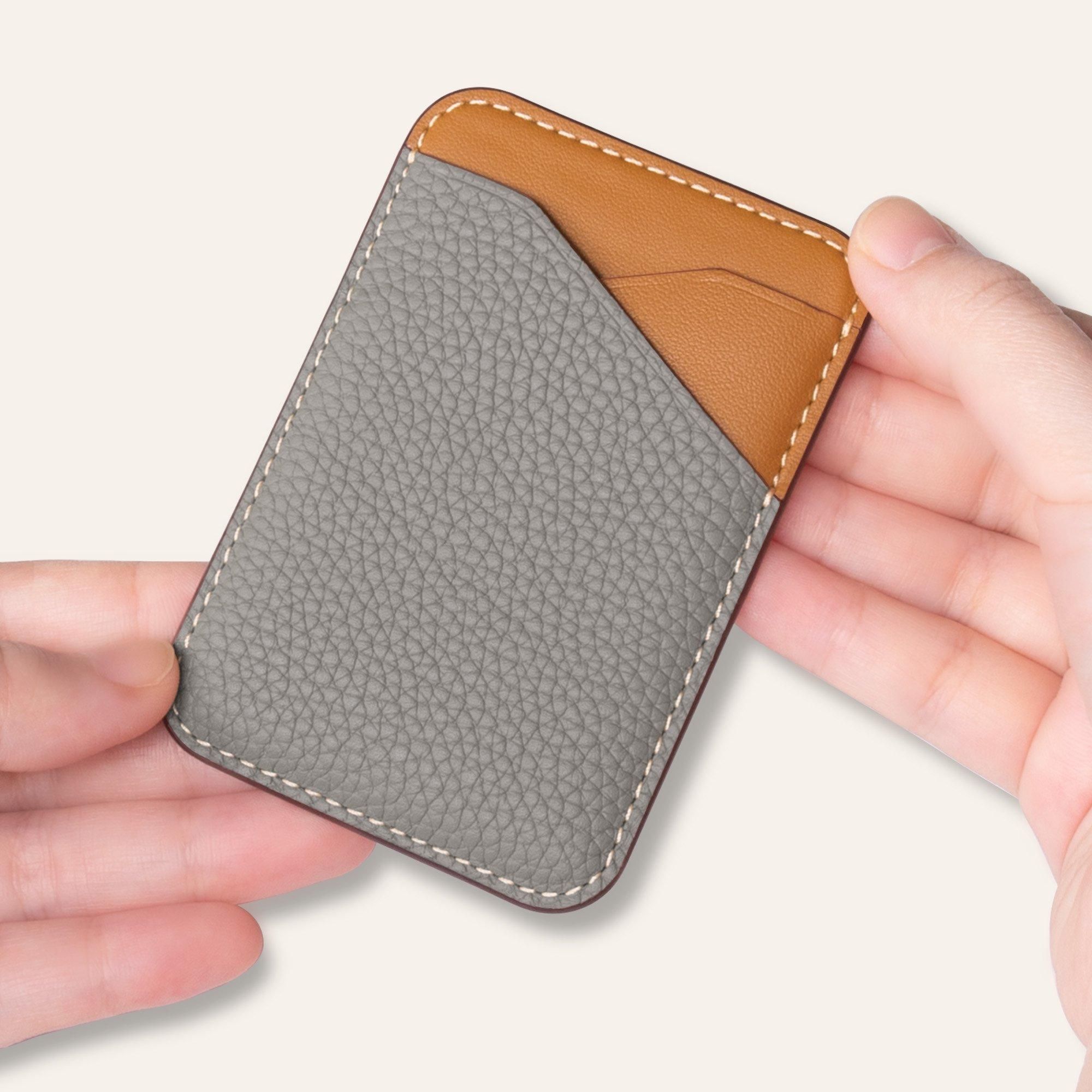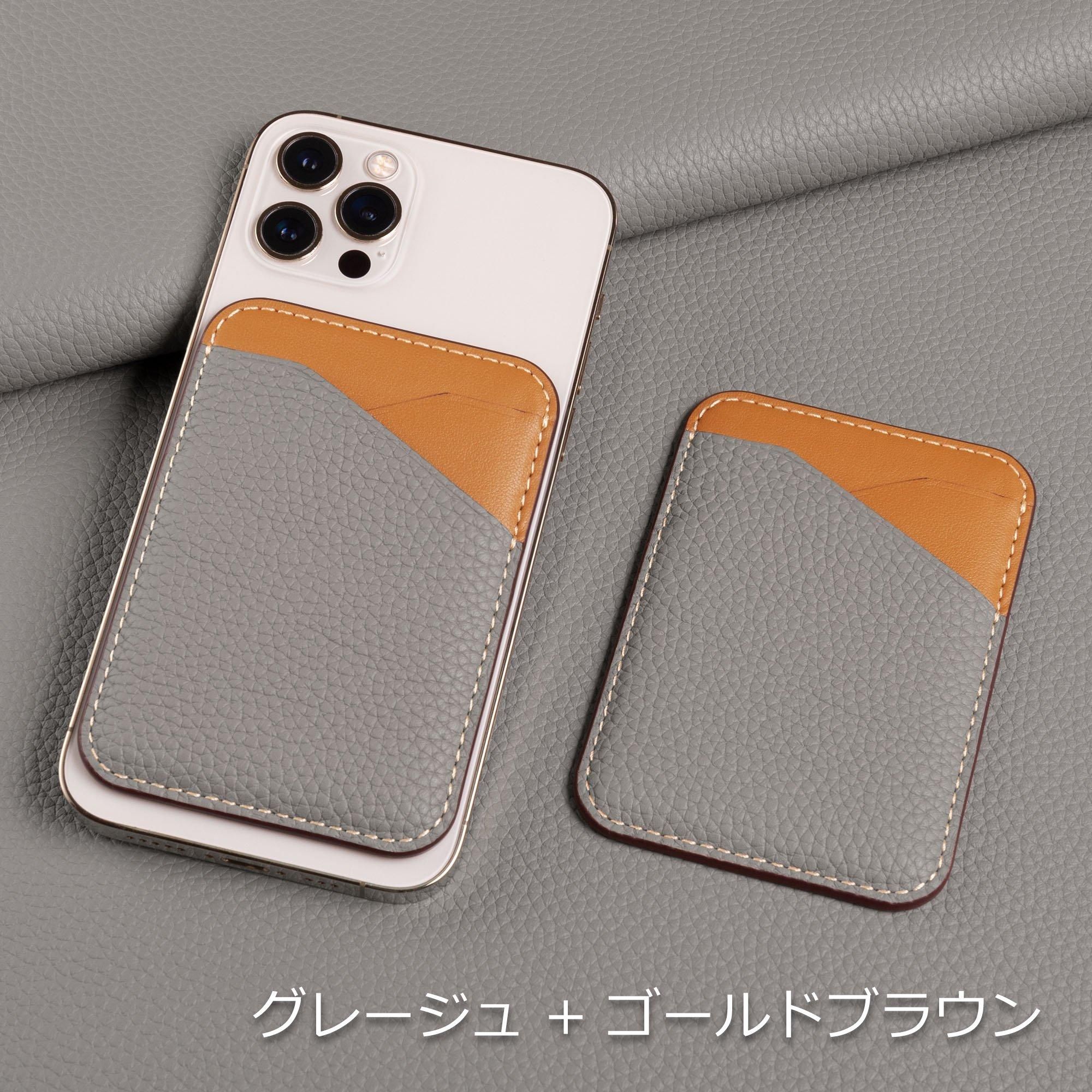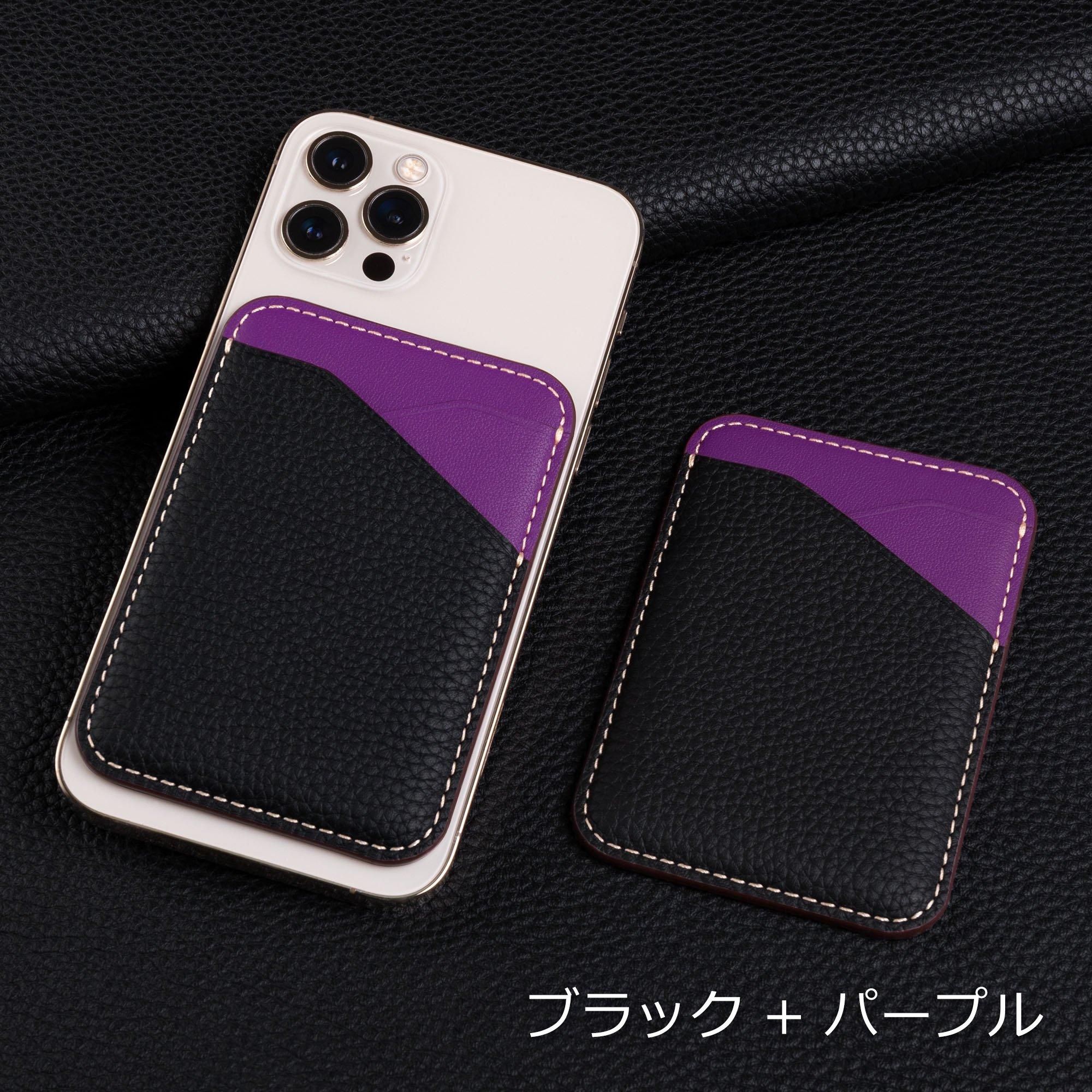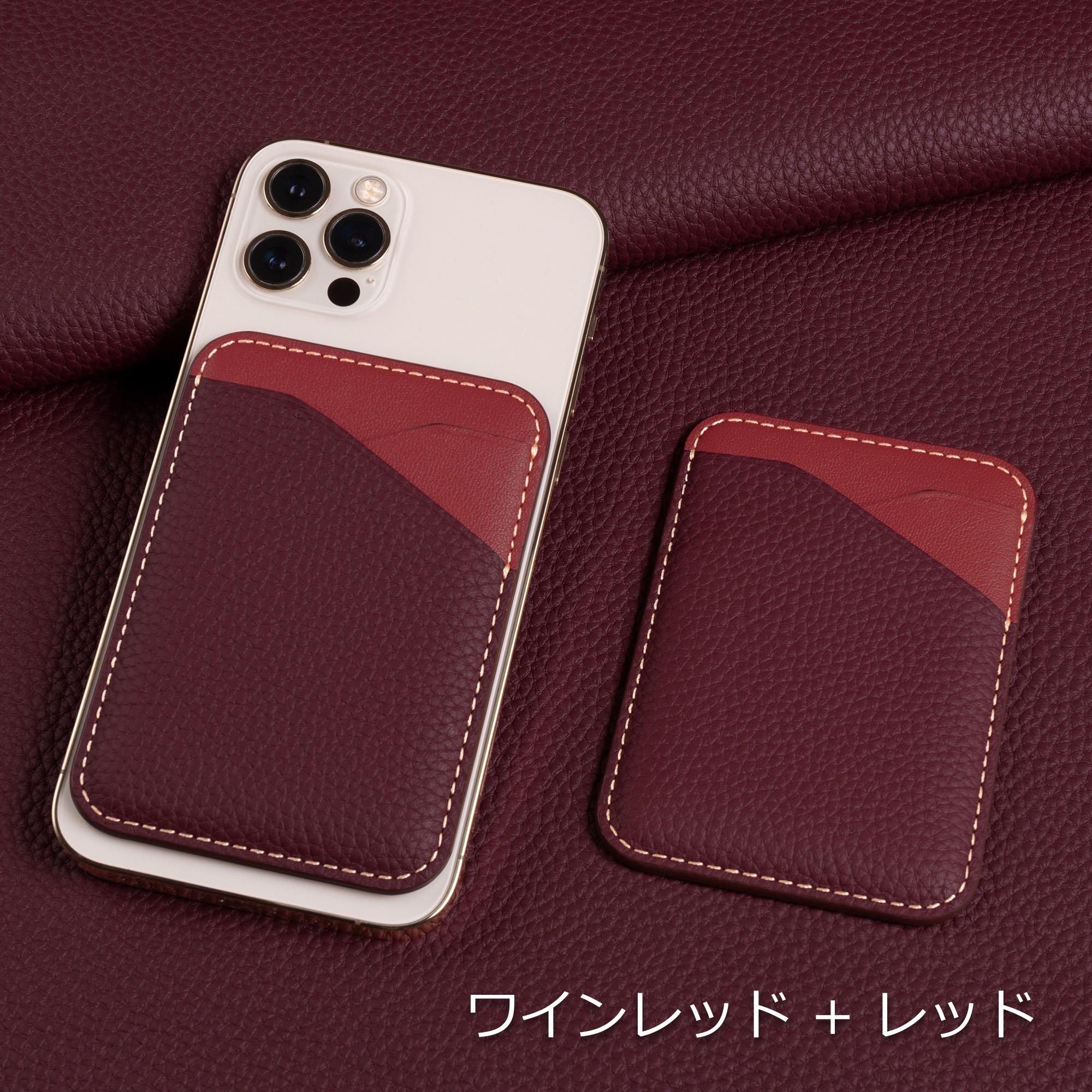 ヨーロッパの高級ブランドがこぞって採用している「シュリンクカーフレザー」と滑らかな触り心地の「スムースレザー」を組み合わせた、エレガントなカードケースです。マイクロ吸盤シートにより、スマートフォンの背面に装着できるため、軽量かつスリムなデザインで、気軽にお出かけいただけます。