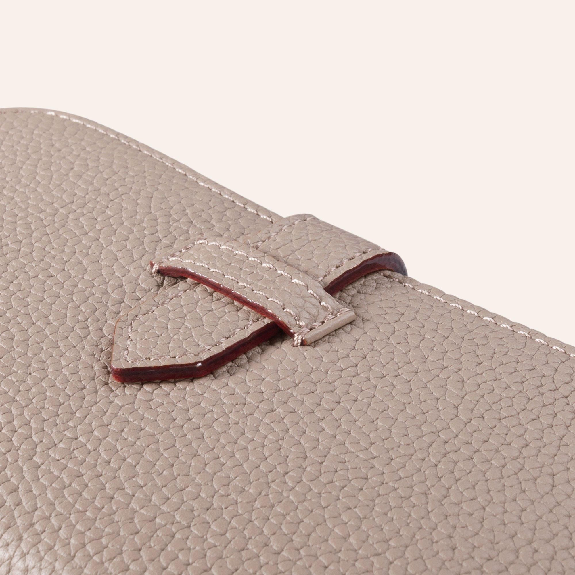 シュリンクカーフレザーの柔らかい風合いに絶妙な曲線デザイン。外側に継ぎ目のない贅沢な一枚革、内側に同じ本革素材で美しく仕上げ、持つ度に手にしっくりと馴染み、外見も内面も高級感があふれます。