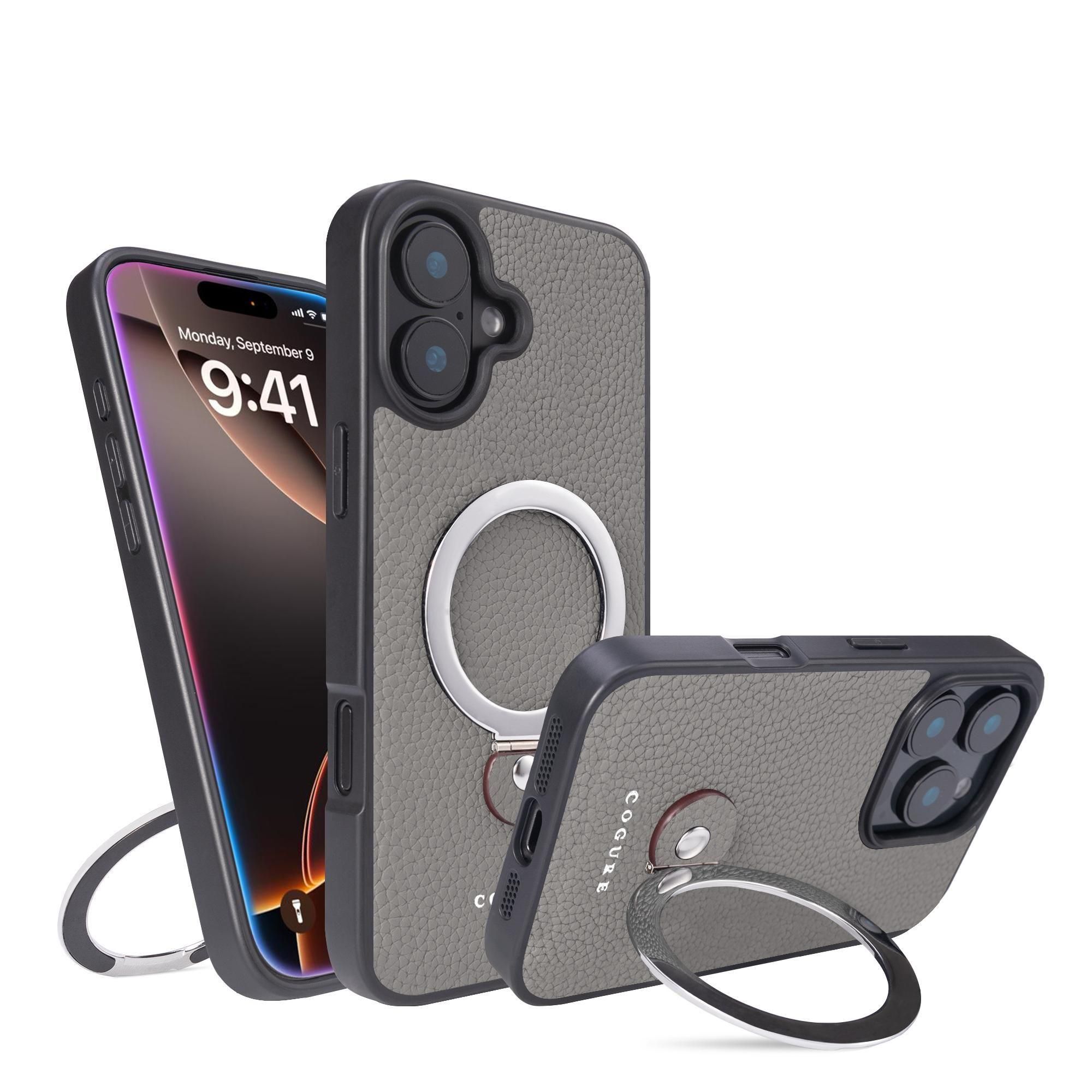 iPhone 16 Plus ケース 本革 360度スタンド付き Qi2 MagSafe 充電対応