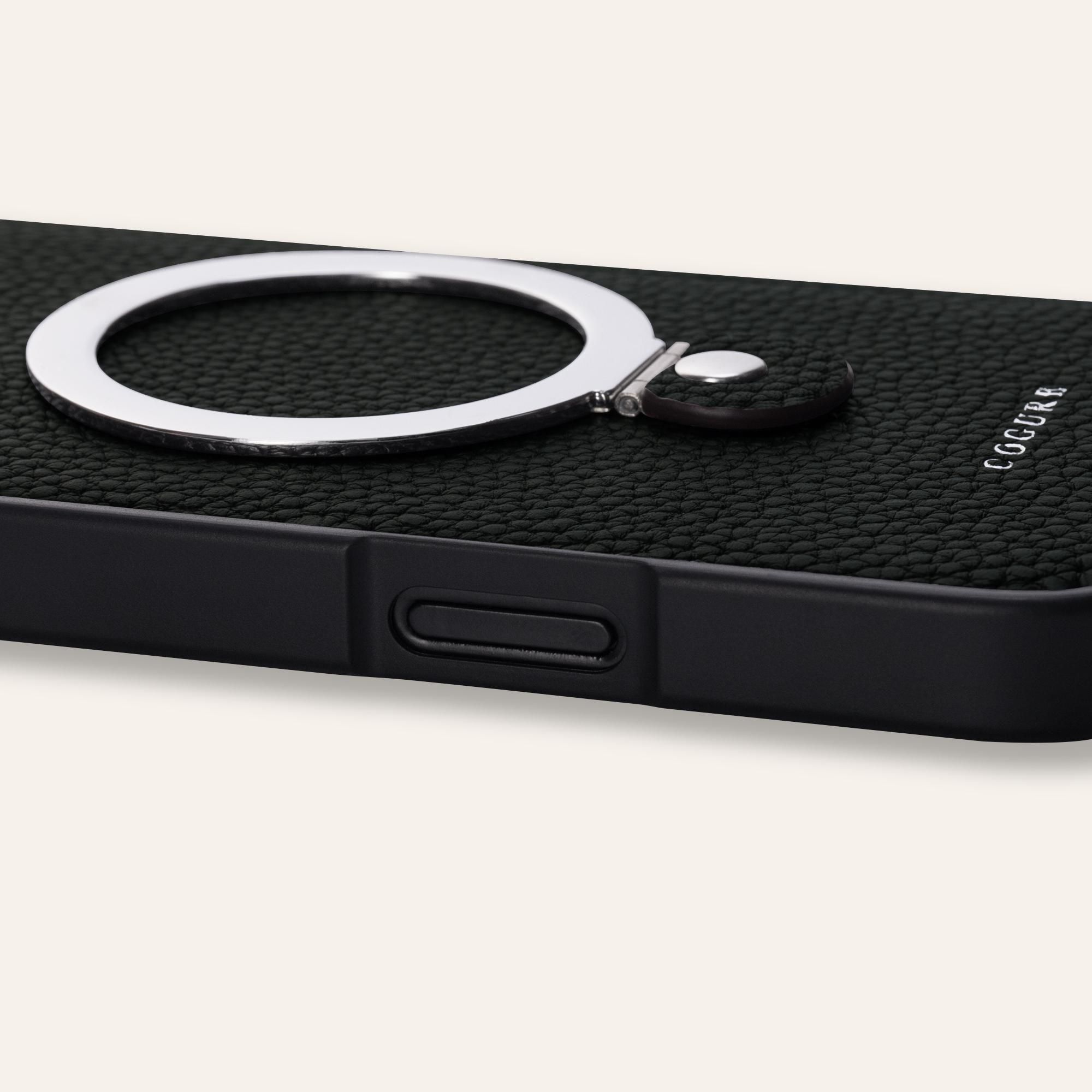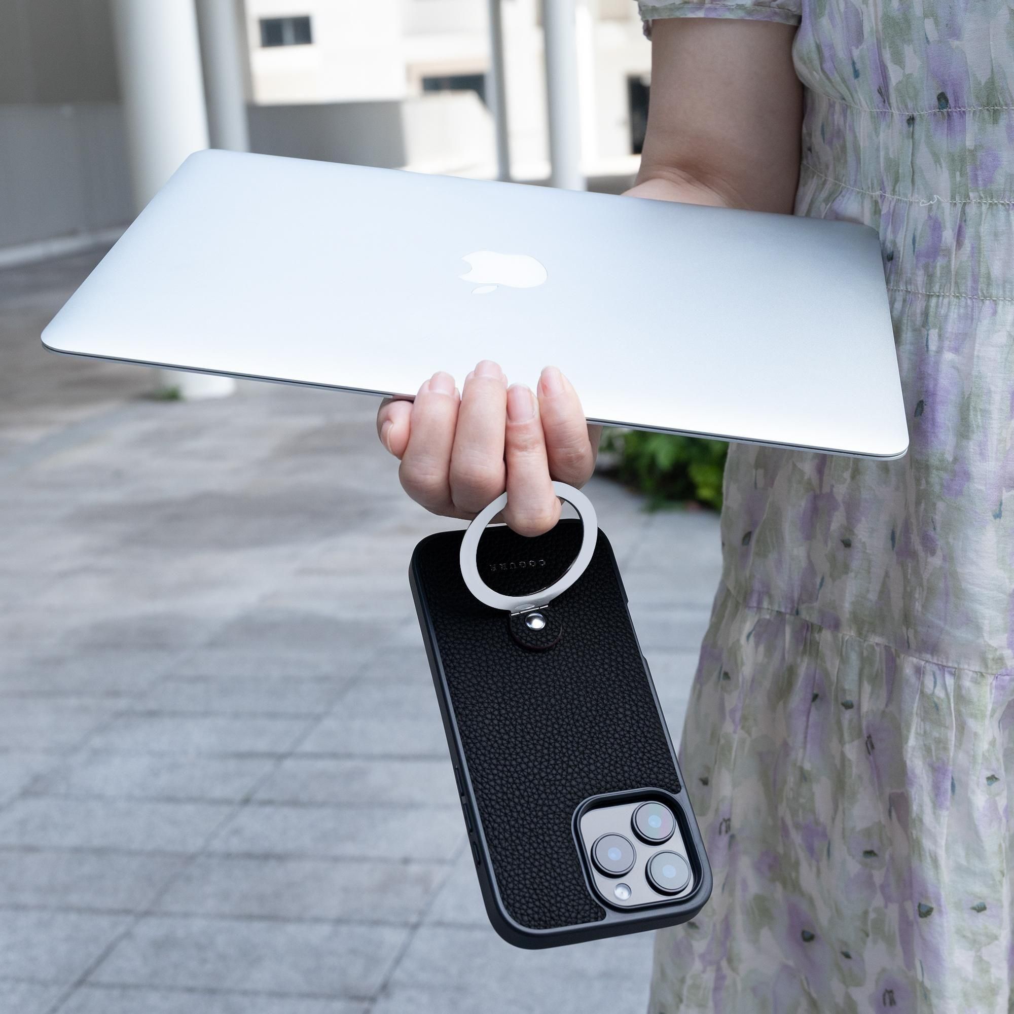 本製品は、背面リングに強力なマグネットを内蔵しており、ケースを装着したままMagSafeおよびQi2規格の充電器に対応しています。 ワイヤレス充電はもちろん、モバイルバッテリー、車載ホルダー、マグネット式ウォレットなど、各種MagSafe / Qi2アクセサリーとの併用も可能です。