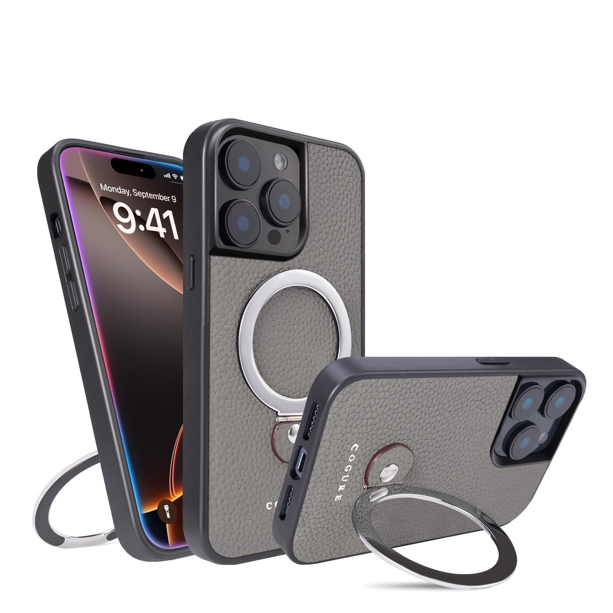 iPhone 15 Pro ケース 本革 360度スタンド付き Qi2 MagSafe 充電対応