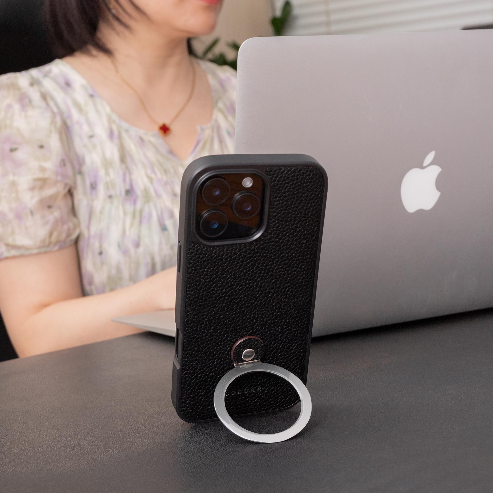ケース背面に備えられたリングスタンドは、360度自在に回転し、縦向き・横向きいずれの使用シーンにも最適な角度を実現します。動画の視聴やビデオ通話はもちろん、レシピを見ながらの調理時など、さまざまな場面でその利便性を発揮。スタンド一体型のスマートなデザインにより、持ち運びの際もかさばらず、快適にご使用いただけます。