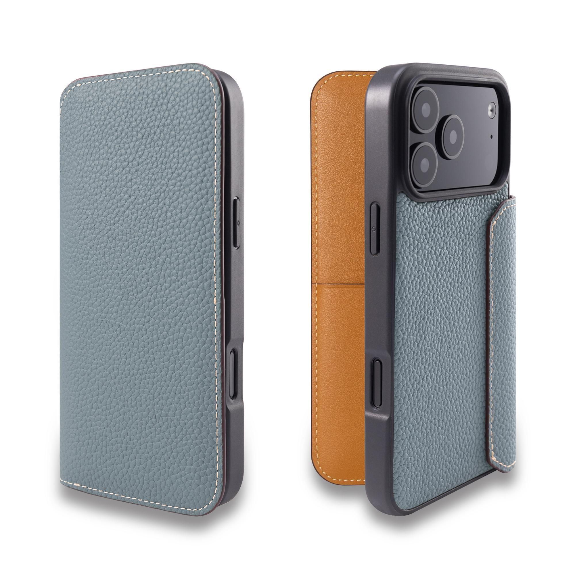 iPhone 17 Pro Max シュリンクカーフレザー 本革ダイアリーケース 手帳型 磁石なし