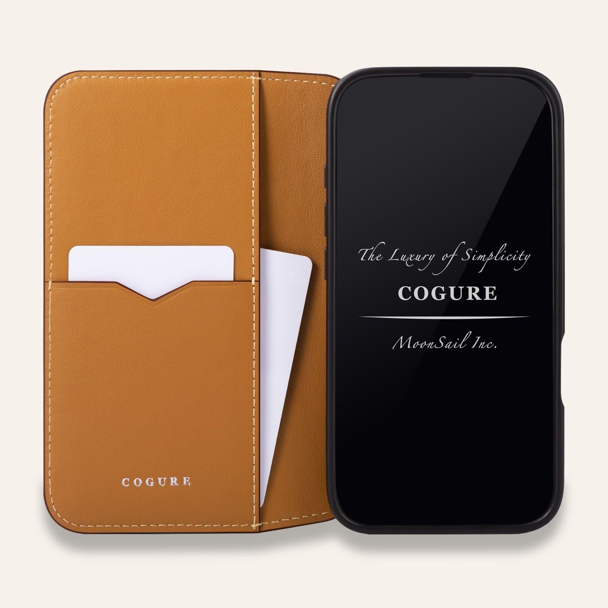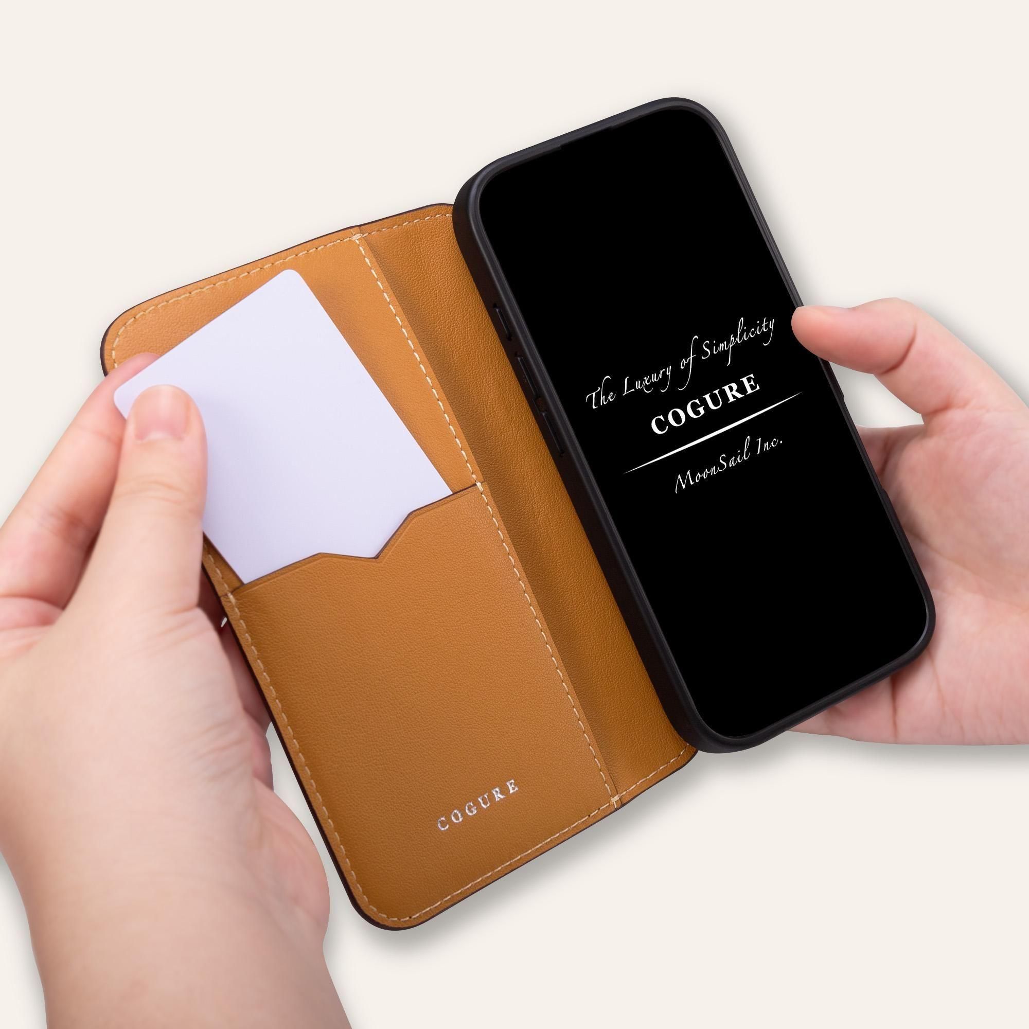COGUREが独自に考案したユニークなデザインにより、通常の手帳型ケースよりも薄く、エッジが手に馴染むよう設計されています。