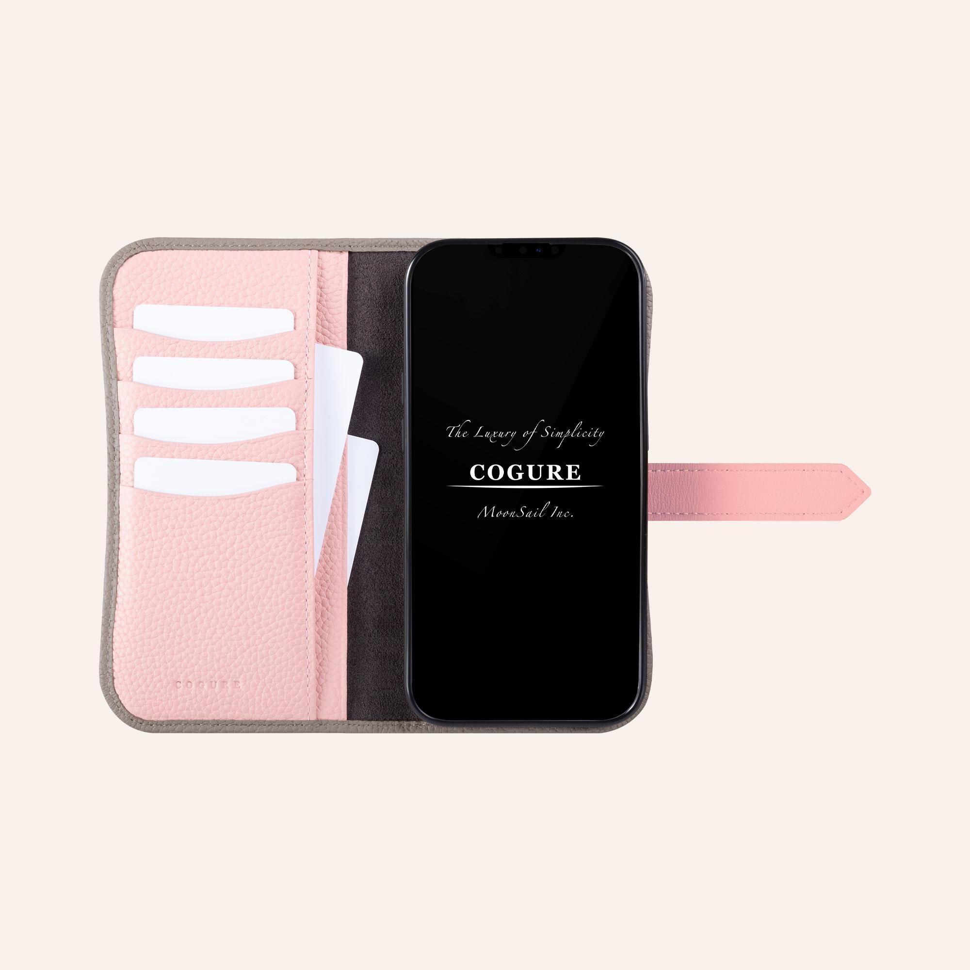 iPhone本体と収納したカード等への影響を考慮して、マグネットを一切使用せず、伝統的な差し込みタイプのベルトを採用しました。クラシックな手帳のようにお楽しみいただけます。