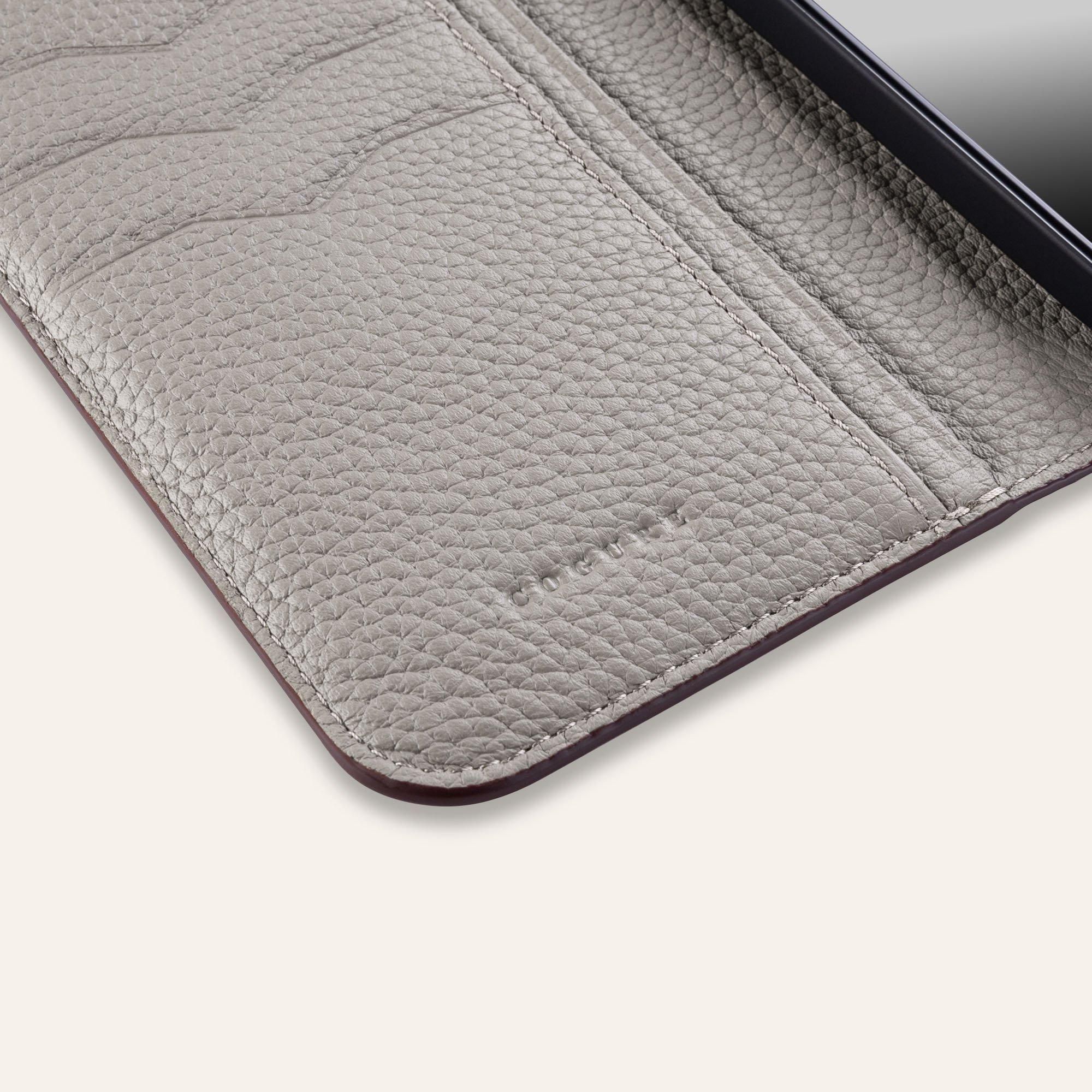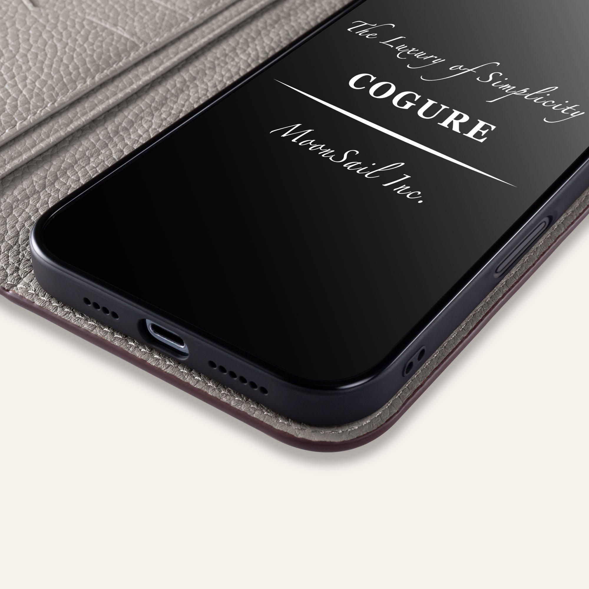 一般的な手帳型ケースでは、カメラホール周りのスペースが狭く、接着されていないことがよく見られます。しかし、COGUREでは職人たちが手を抜かず、カメラの角部分のわずかなスペースを利用してケースとバックカバーを縫い付けることにしました。この工夫により、業界全体でよくあるカメラホール部分の変形問題を解決することができました。