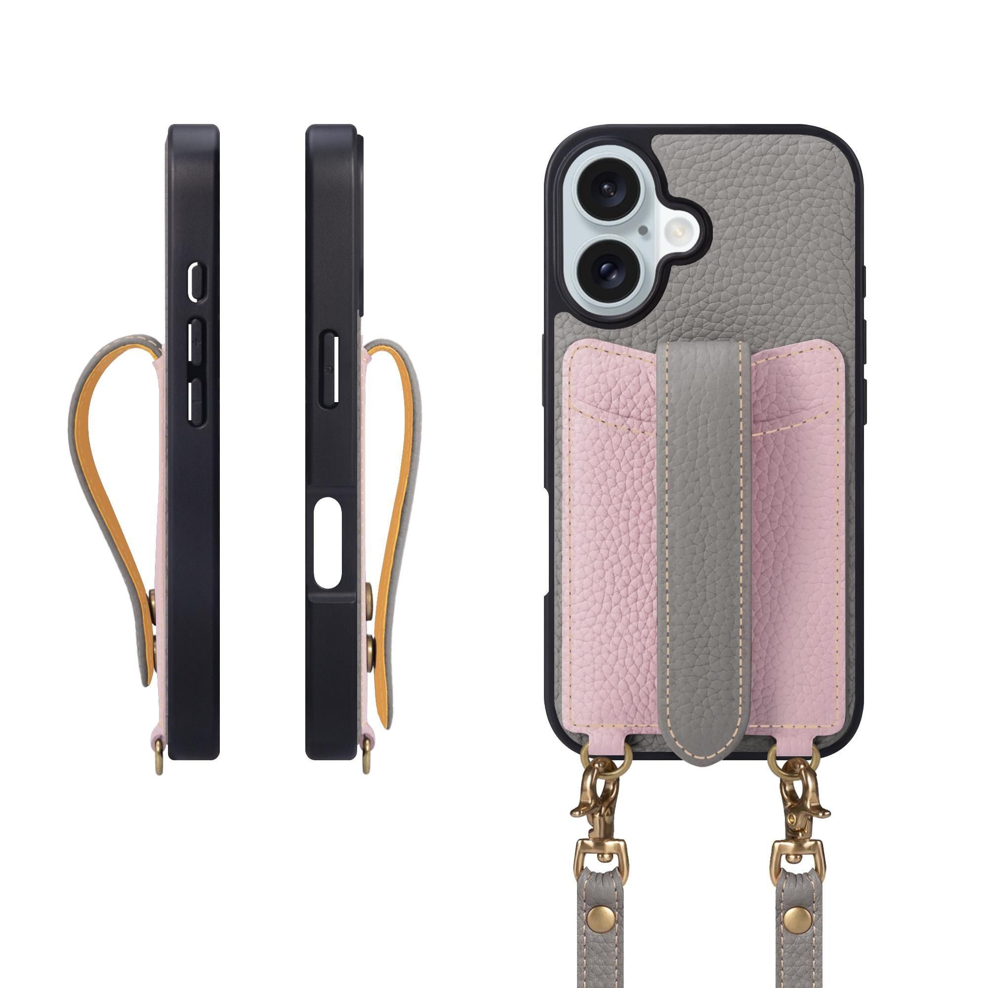 iPhone 17 落下防止ベルト カード収納付き 本革バックカバーケース スマホショルダーストラップ セット