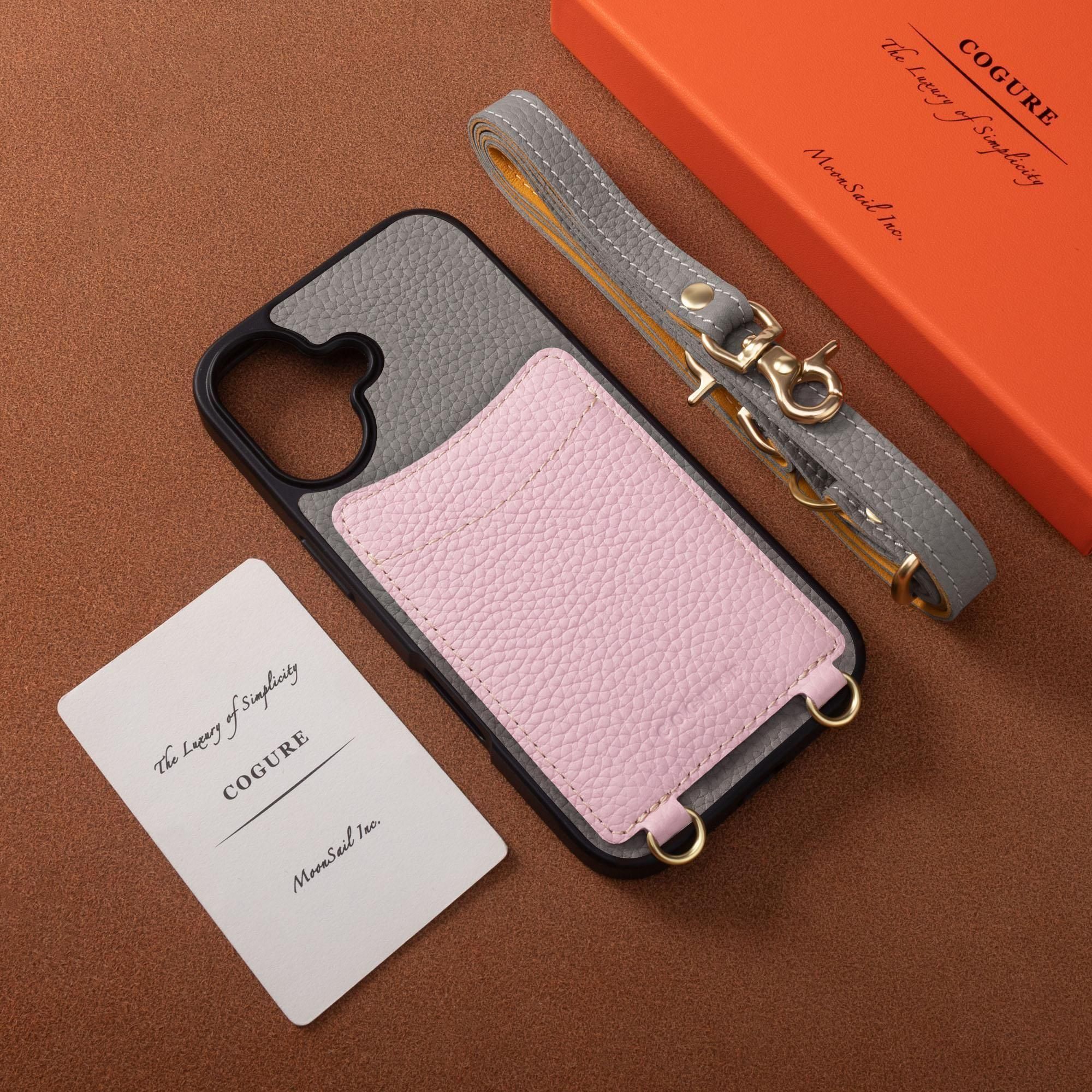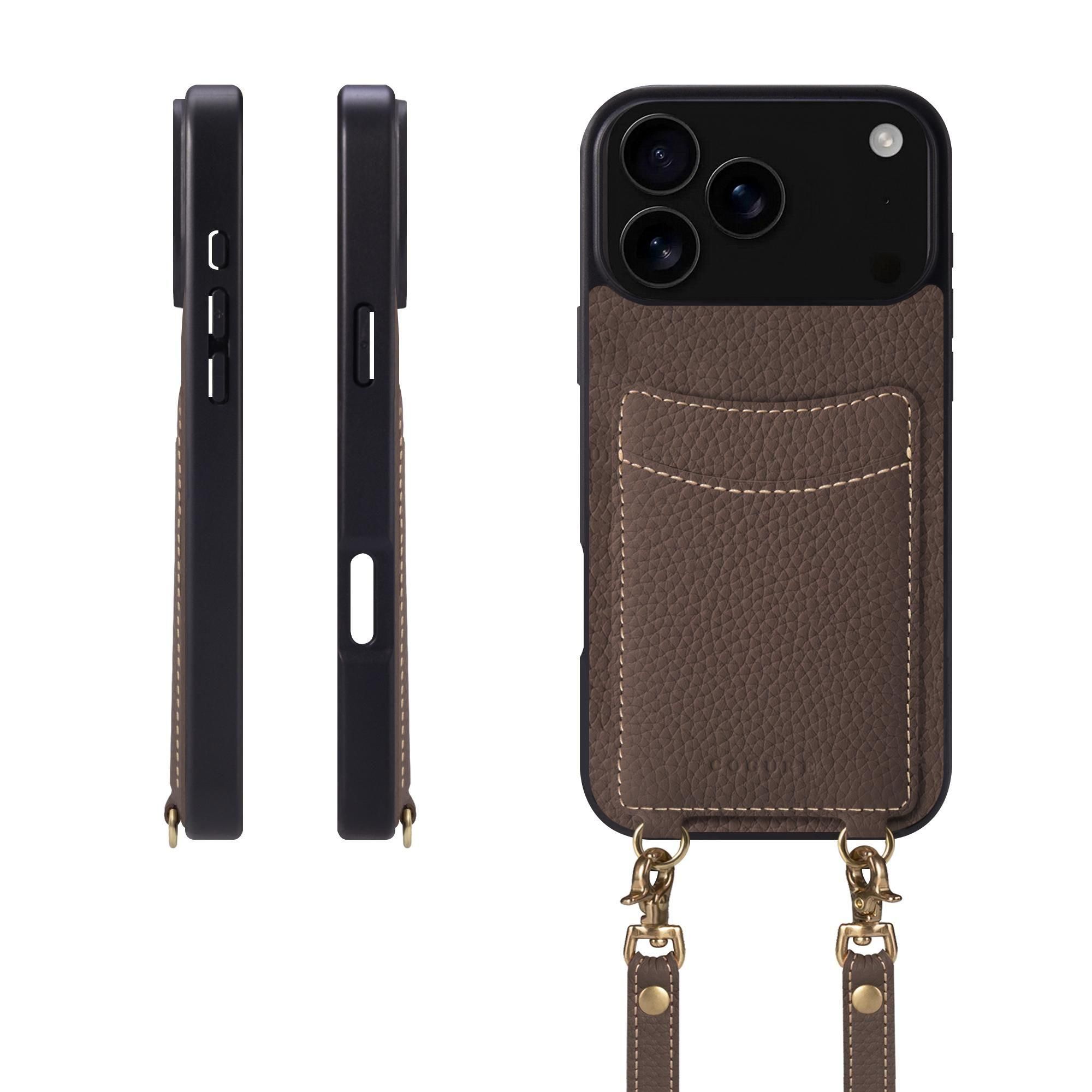 iPhone 17 Pro Max カード収納付き 本革バックカバーケース スマホショルダーストラップ セット