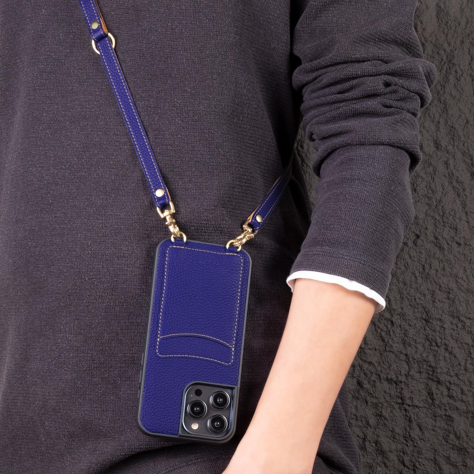 幅1.2cmと絶妙な幅で、どんなコーディネートにも合わせやすい。長さを調節することによって、ネックストラップにもなる2WAYショルダーストラップです。表側はシュリンクカーフレザー、裏側はスムースレザーを使用し、表も裏も本革という贅沢な仕様になります。