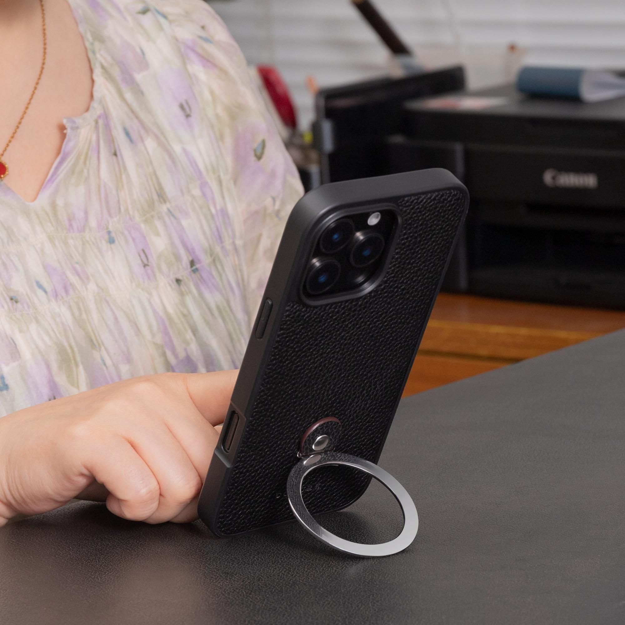 ケース背面に備えられたリングスタンドは、360度自在に回転し、縦向き・横向きいずれの使用シーンにも最適な角度を実現します。動画の視聴やビデオ通話はもちろん、レシピを見ながらの調理時など、さまざまな場面でその利便性を発揮。スタンド一体型のスマートなデザインにより、持ち運びの際もかさばらず、快適にご使用いただけます。