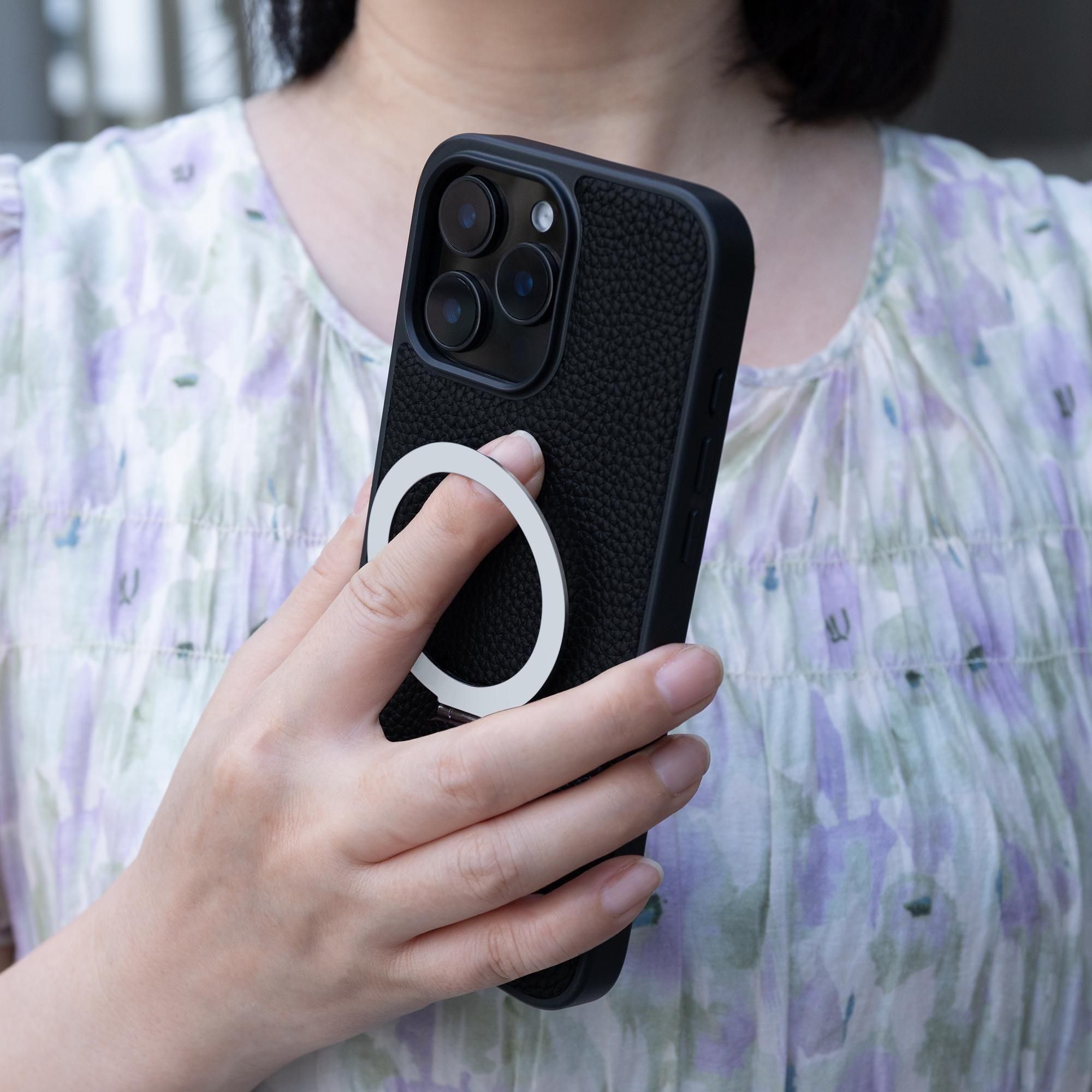 本製品は、背面リングに強力なマグネットを内蔵しており、ケースを装着したままMagSafeおよびQi2規格の充電器に対応しています。 ワイヤレス充電はもちろん、モバイルバッテリー、車載ホルダー、マグネット式ウォレットなど、各種MagSafe / Qi2アクセサリーとの併用も可能です。