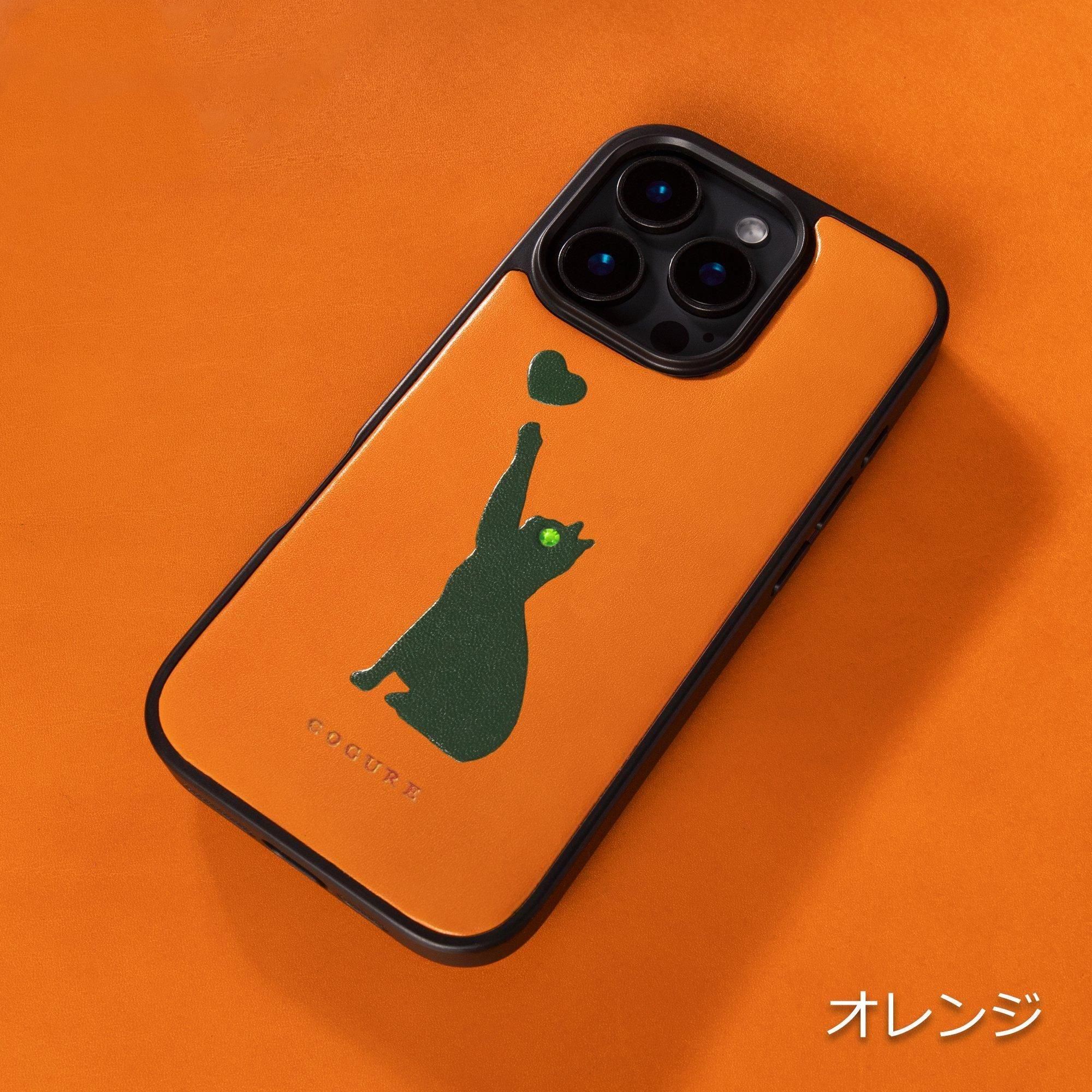 COTCatA iPhone Air バックカバーケース イタリアンサドルレザー & ダイヤモンド加工グリーン宝飾ガラス 猫柄