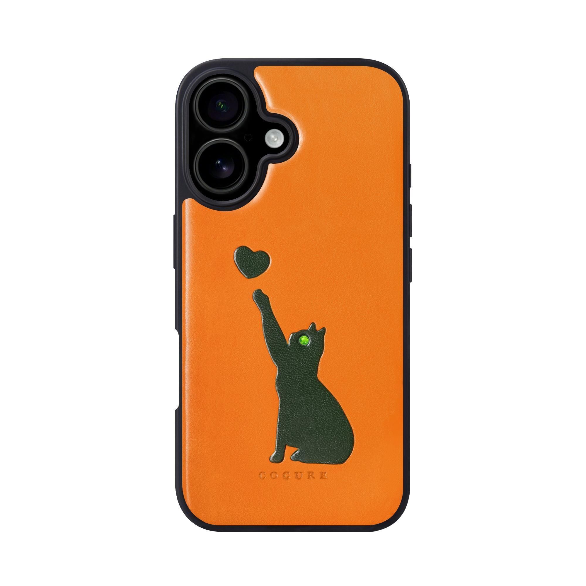 COTCatA iPhone 17 バックカバーケース イタリアンサドルレザー & ダイヤモンド加工グリーン宝飾ガラス 猫柄