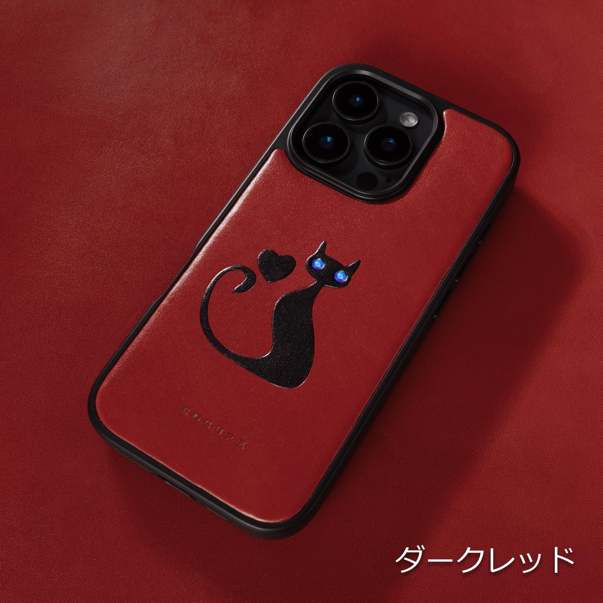 滑らかなイタリアンサドルレザーをベースに、ハートと猫のシルエットが精緻にデザインされた、遊び心あふれる逸品です。猫の瞳には、ダイヤモンド加工が施されたブルーサファイア宝飾ガラスをあしらい、高級感と華やかさを演出。どの角度から見ても美しく、持つたびに心を癒してくれる特別なiPhoneケースです。優雅で愛らしい魅力が、日常に彩りを加えます。