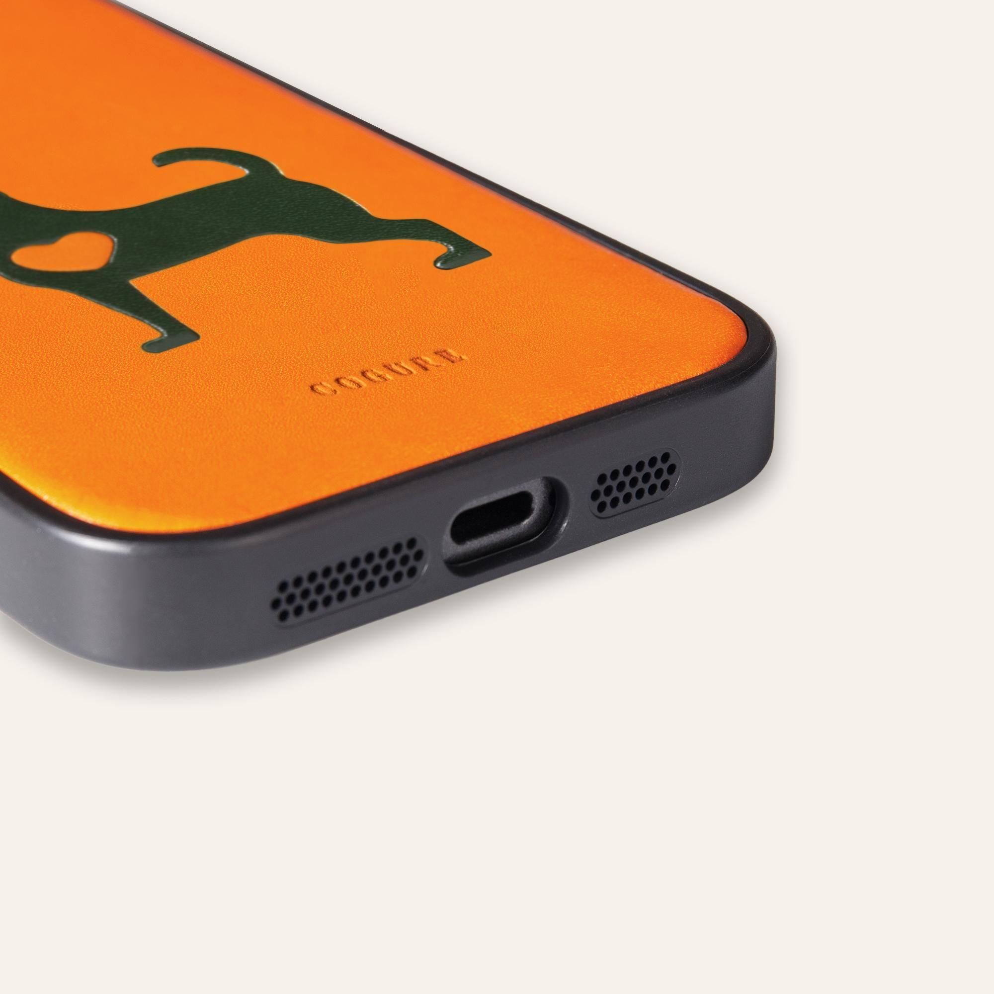 COTChi iPhone 17 バックカバーケース イタリアンサドルレザー & ダイヤモンド加工モンタナサファイア宝飾ガラス チワワ柄