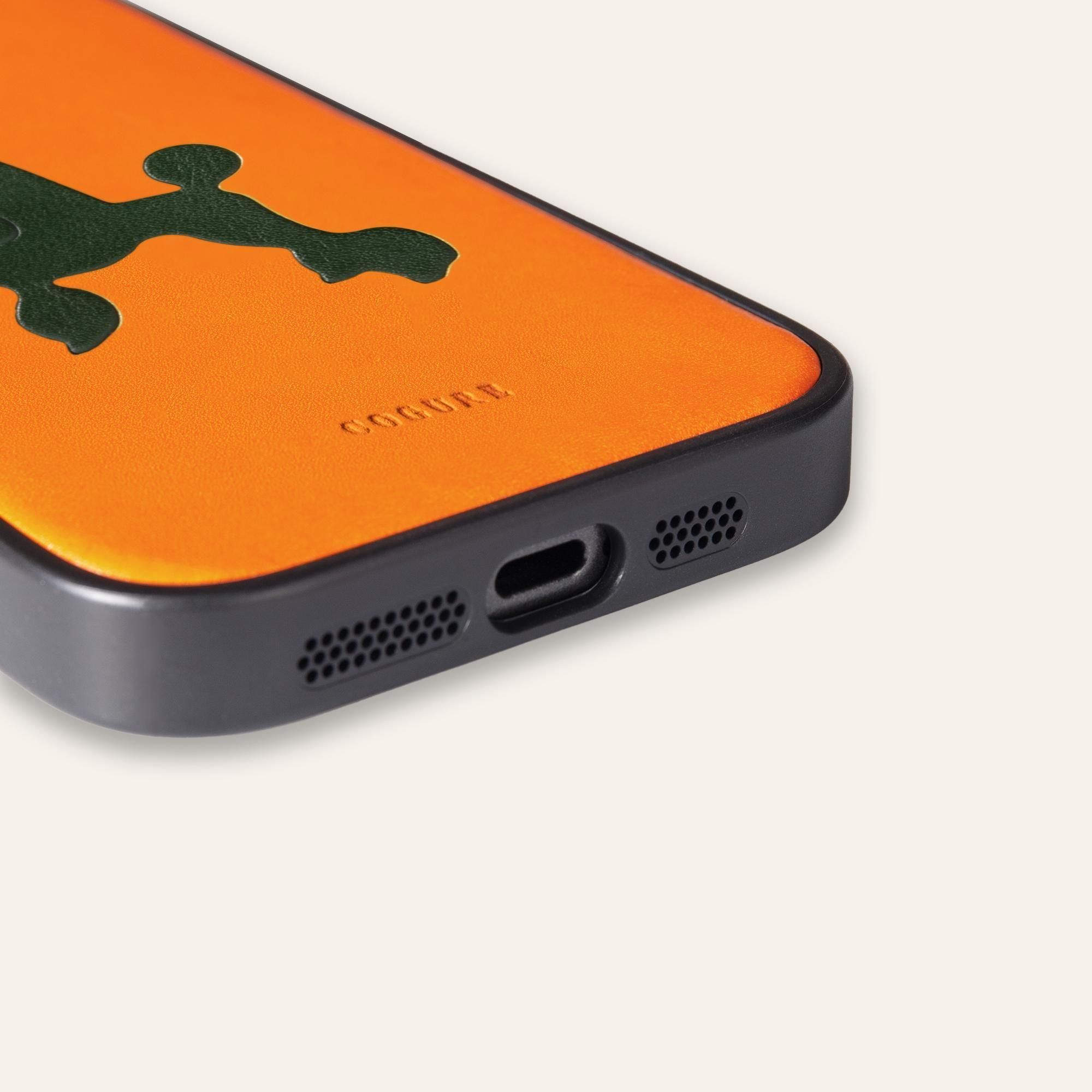 プードル犬柄の形は、精密に型抜きされた後、ベースとなるレザーに巧みに嵌め込まれています。職人の手による丁寧な作業で、レザーにぴったりと嵌め込まれたパーツが立体感を生み出し、デザイン全体に一体感と美しさをもたらします。これにより、遊び心と洗練された印象が絶妙に融合しています。