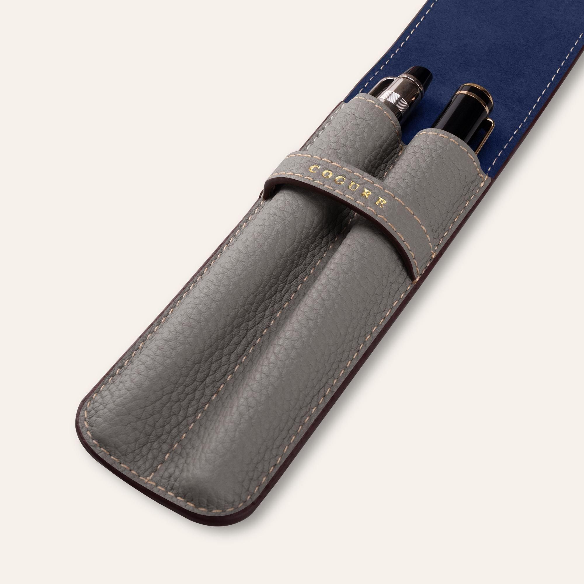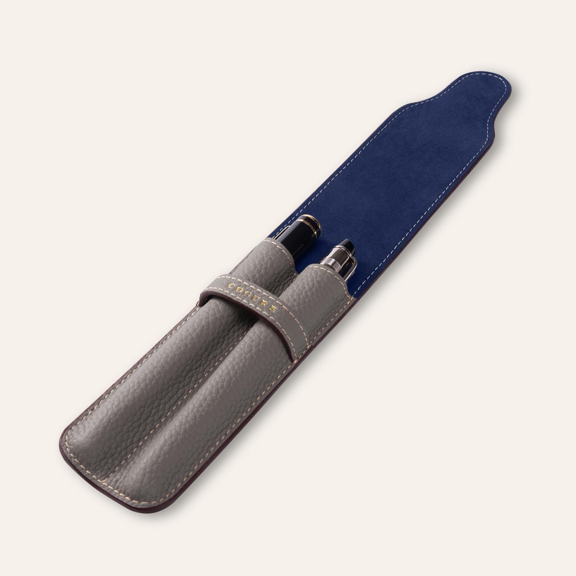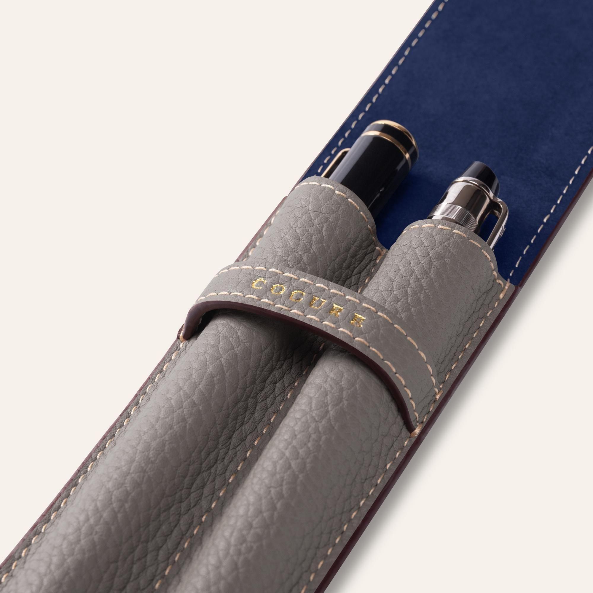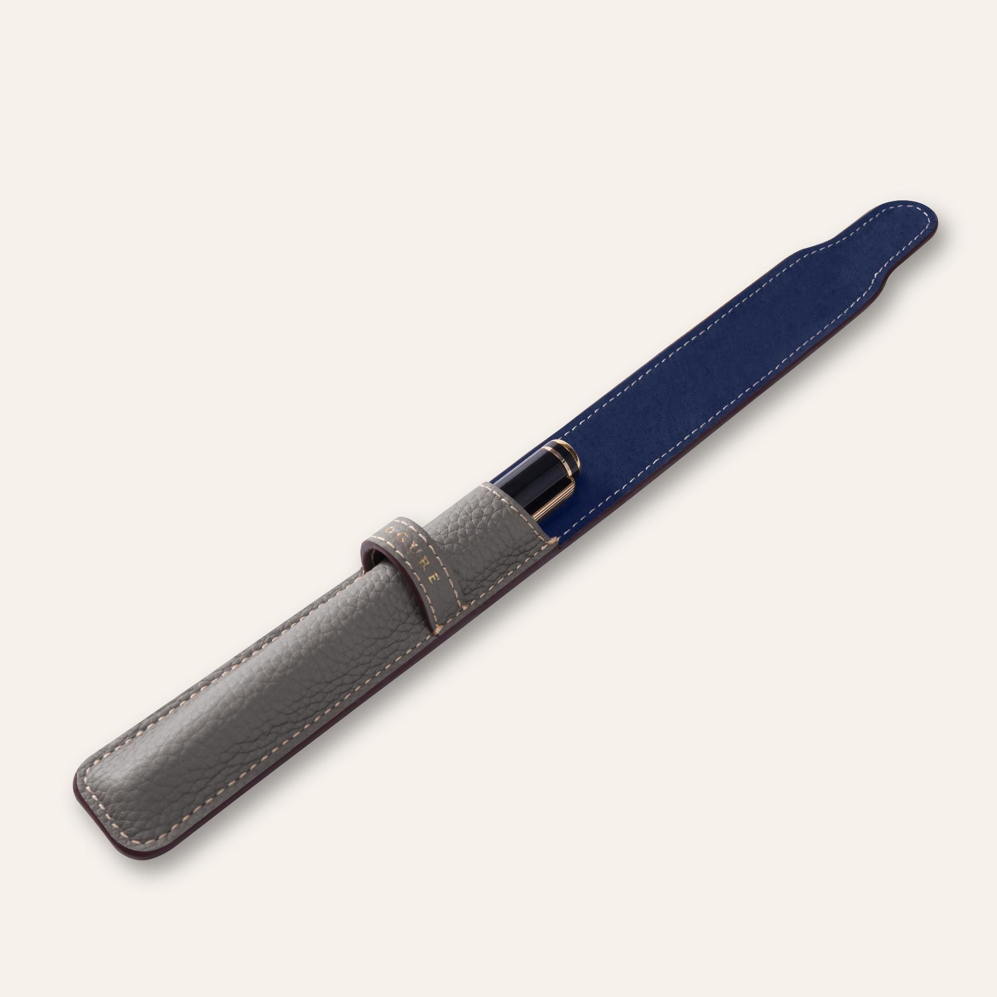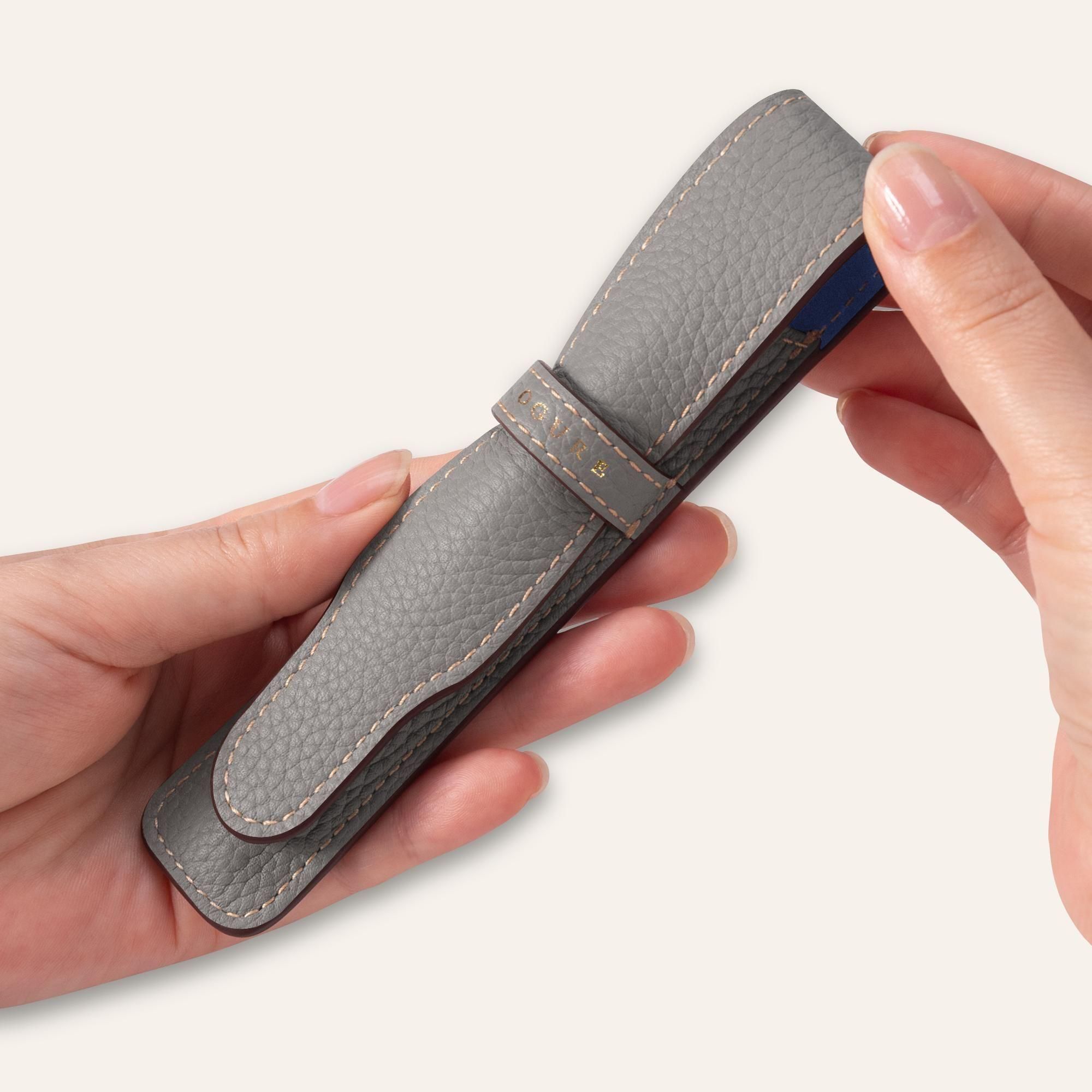内装には、鮮やかなネイビーカラーのピッグスエードを贅沢に使用しています。柔らかな起毛が大切なペンを優しく傷から守り、外装のシュリンクカーフレザーとの美しいコントラストが、開くたびに洗練された印象と上質なサプライズを与えます。さらに、内装全体にピッグスキンを丁寧に張り合わせることで、しっかりとした構造と一層の上質感が生まれ、細部まで贅を尽くした仕上がりとなっています。