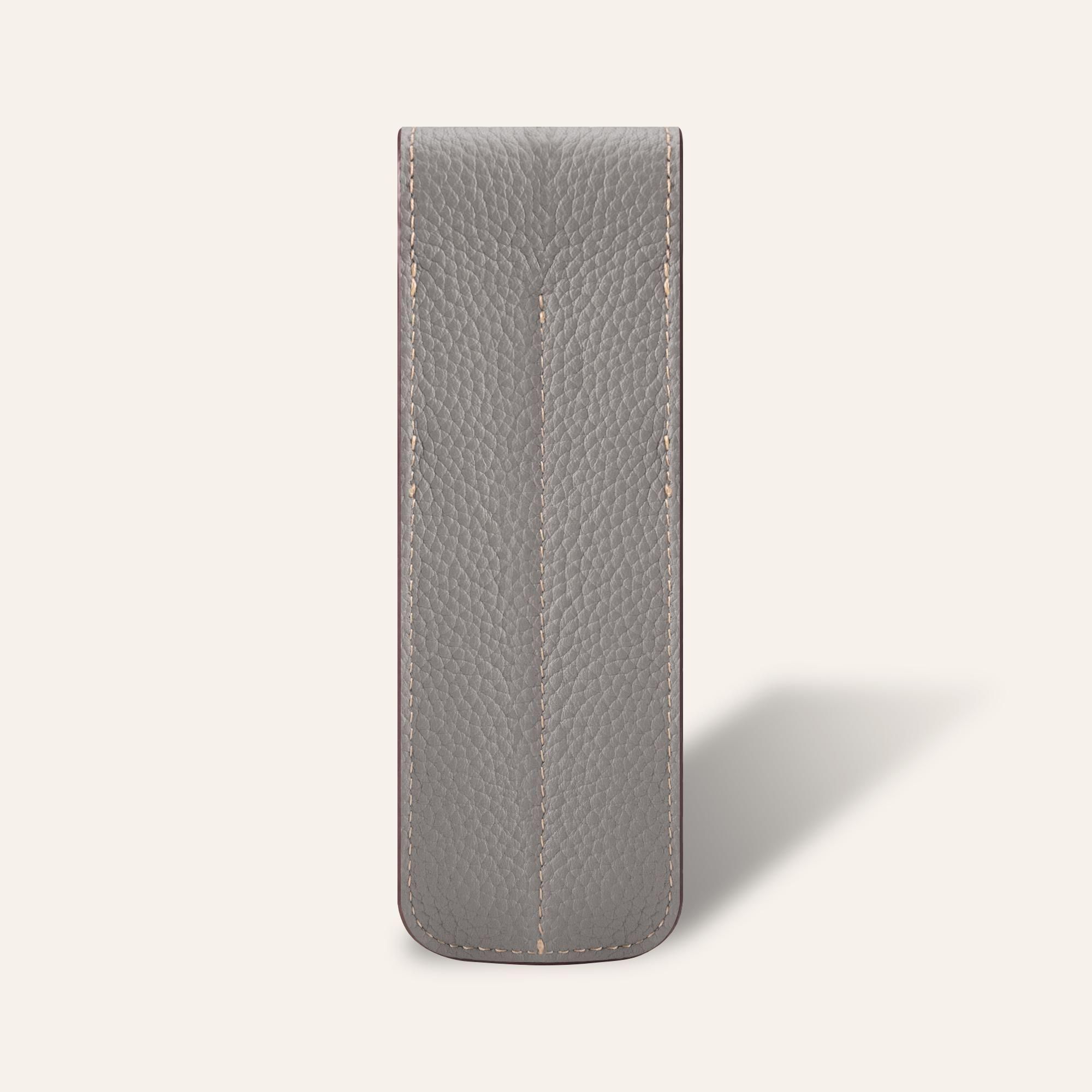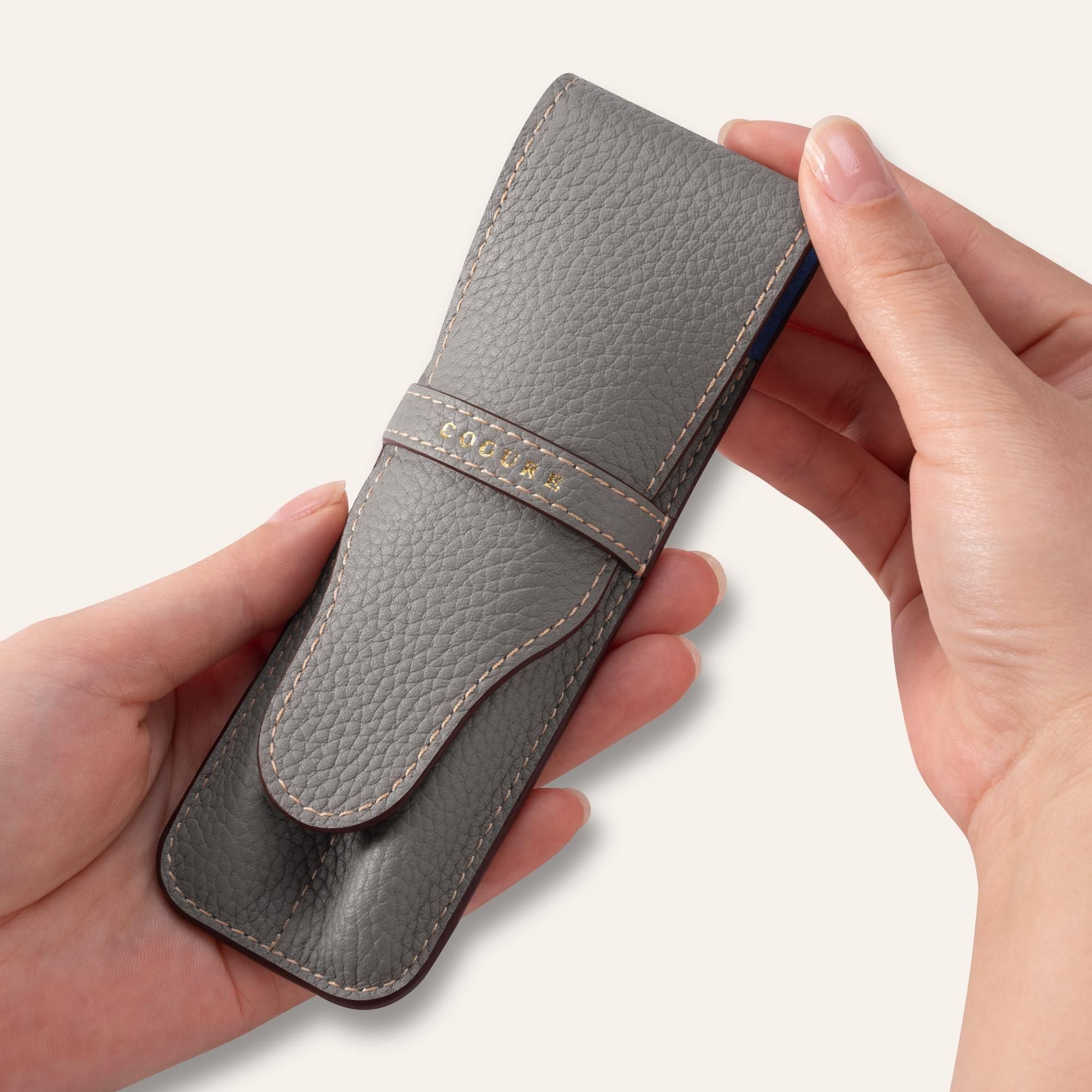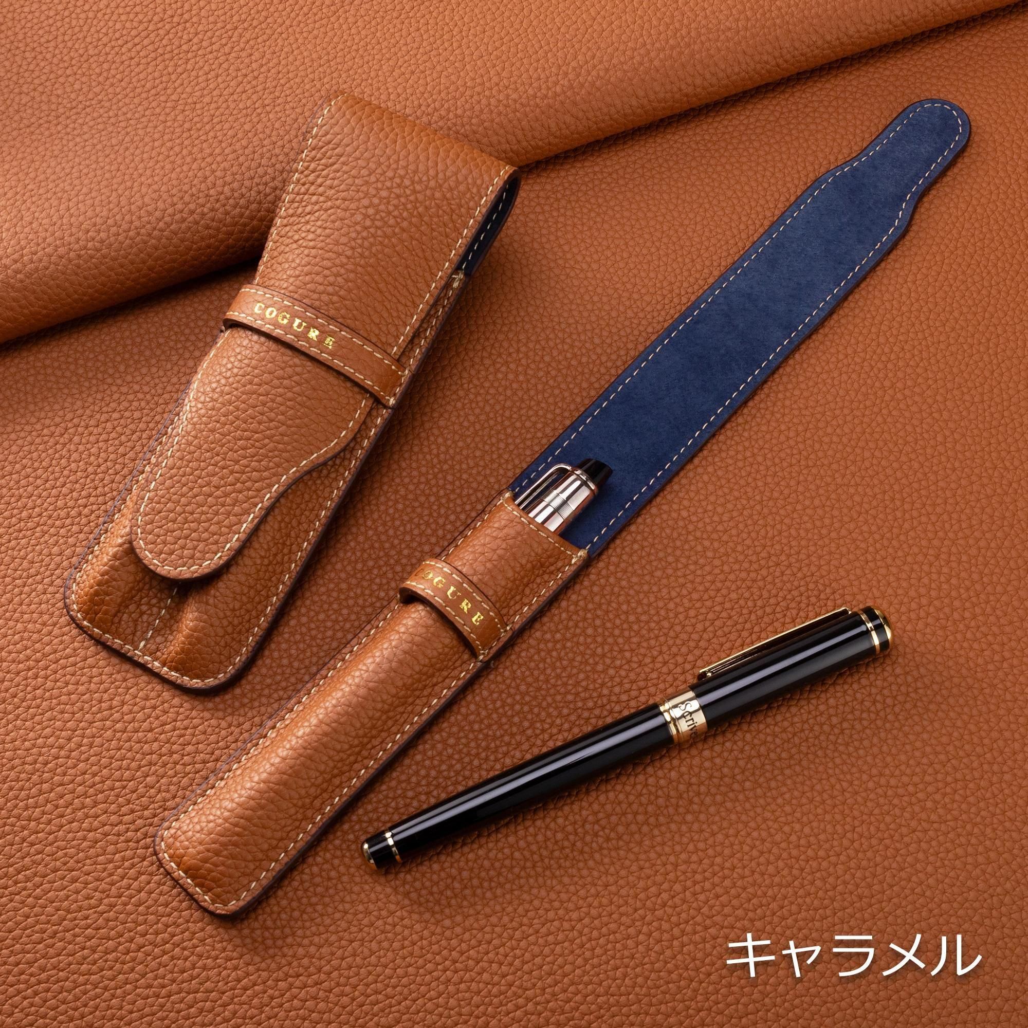 ヨーロッパの高級ブランドが採用するシュリンクカーフを贅沢に使用した、上質なペンシース。きめ細やかなシボと深みのある質感が、手にするたびに優雅な印象を与えます。熟練の職人による丁寧な仕立てで、優れた保護性と使いやすさを兼ね備え、長く愛用いただける仕上がりとなっています。ビジネスからプライベートまで、持つ人の品格をさりげなく引き立てる逸品です。