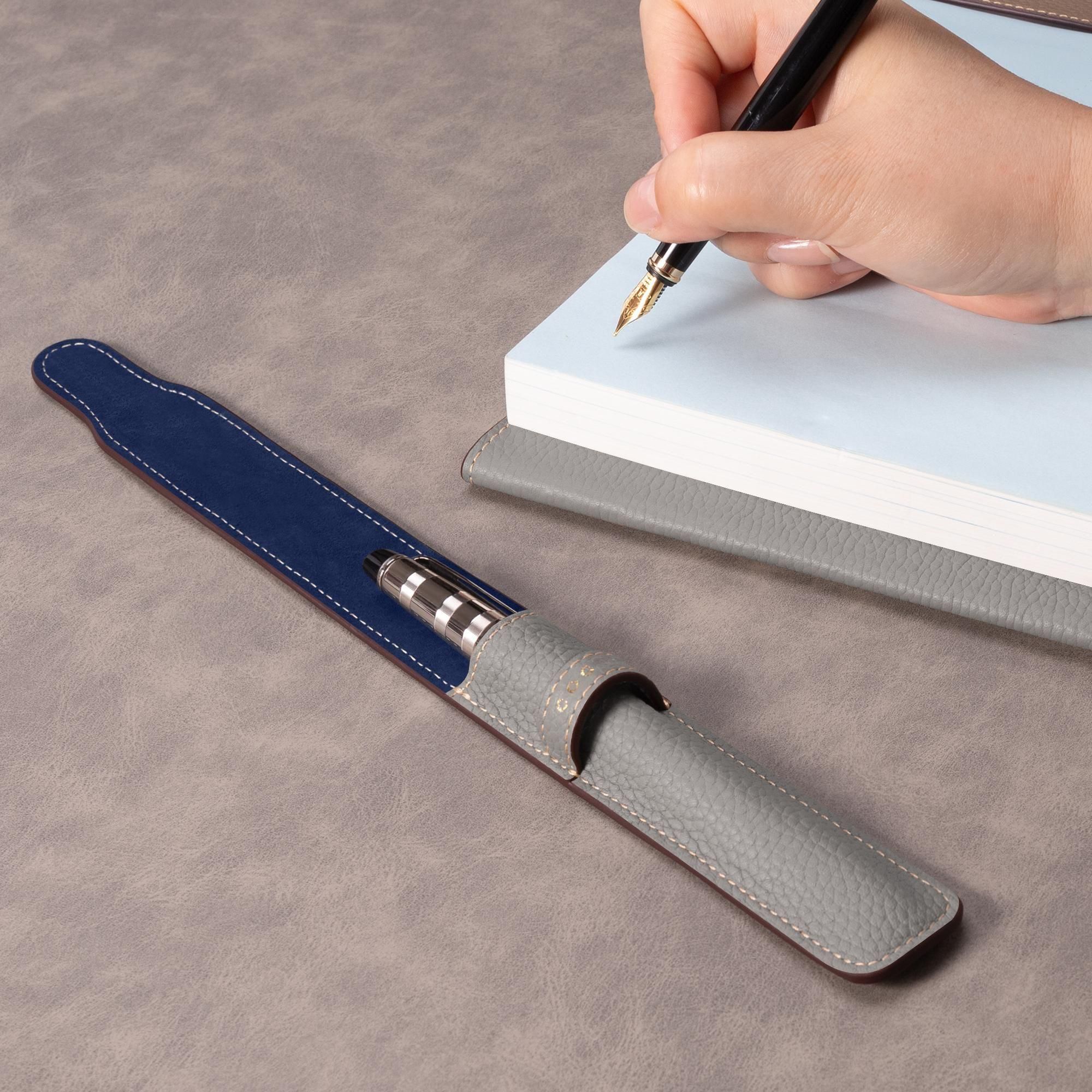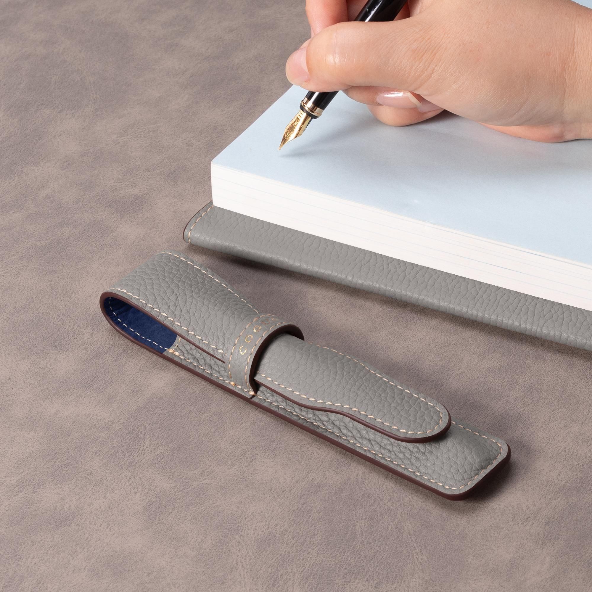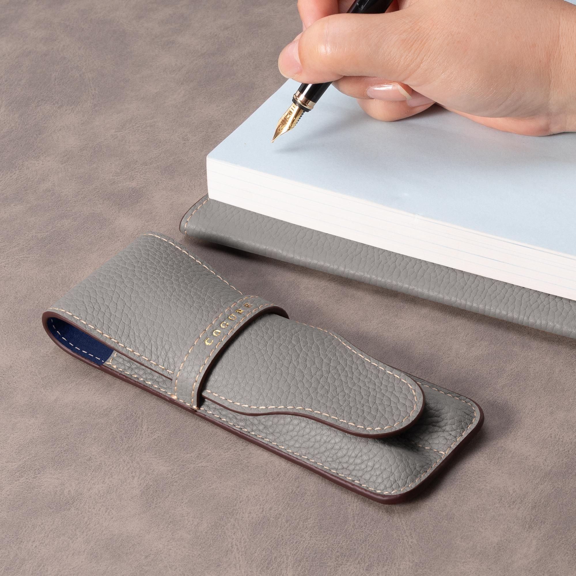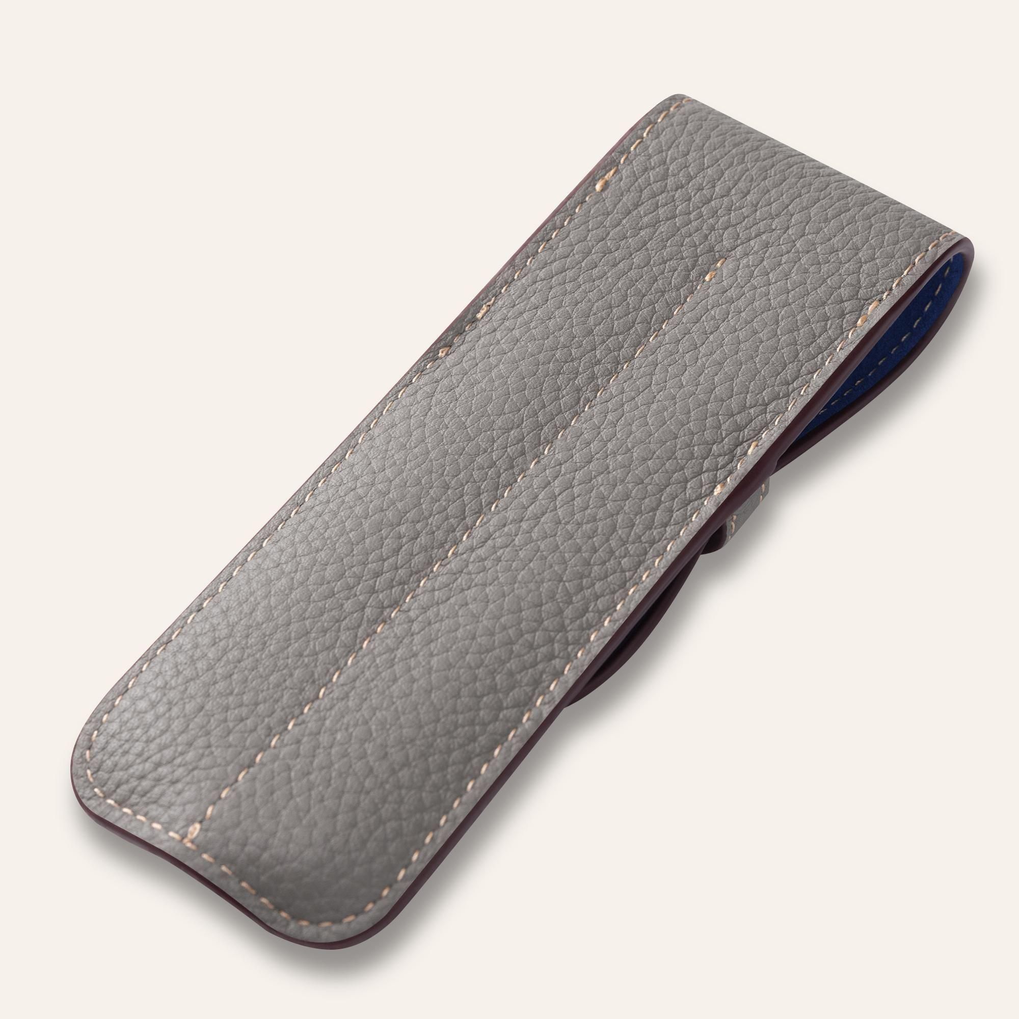 ヨーロッパの高級ブランドが採用するシュリンクカーフを贅沢に使用した、上質なペンシース。きめ細やかなシボと深みのある質感が、手にするたびに優雅な印象を与えます。熟練の職人による丁寧な仕立てで、優れた保護性と使いやすさを兼ね備え、長く愛用いただける仕上がりとなっています。ビジネスからプライベートまで、持つ人の品格をさりげなく引き立てる逸品です。
