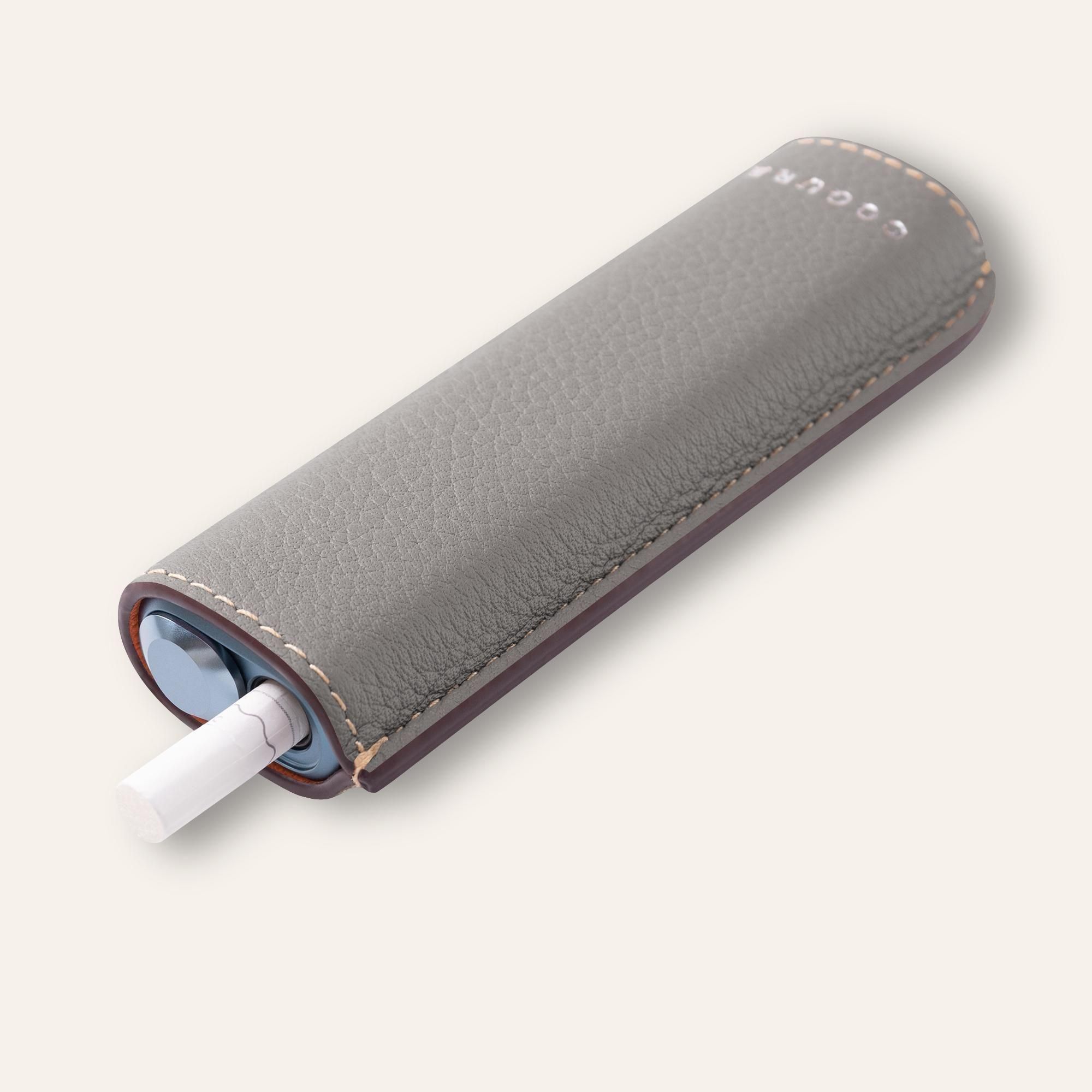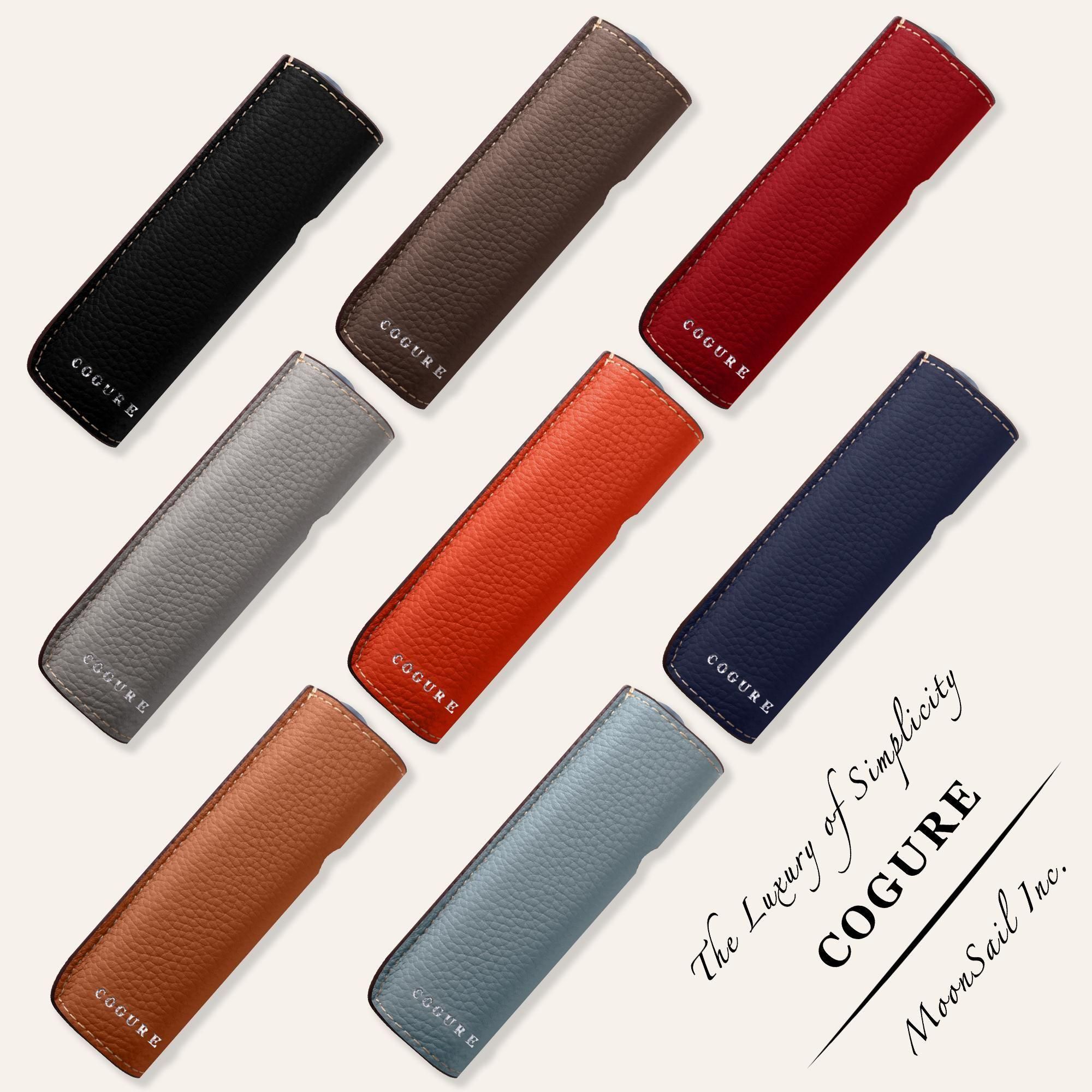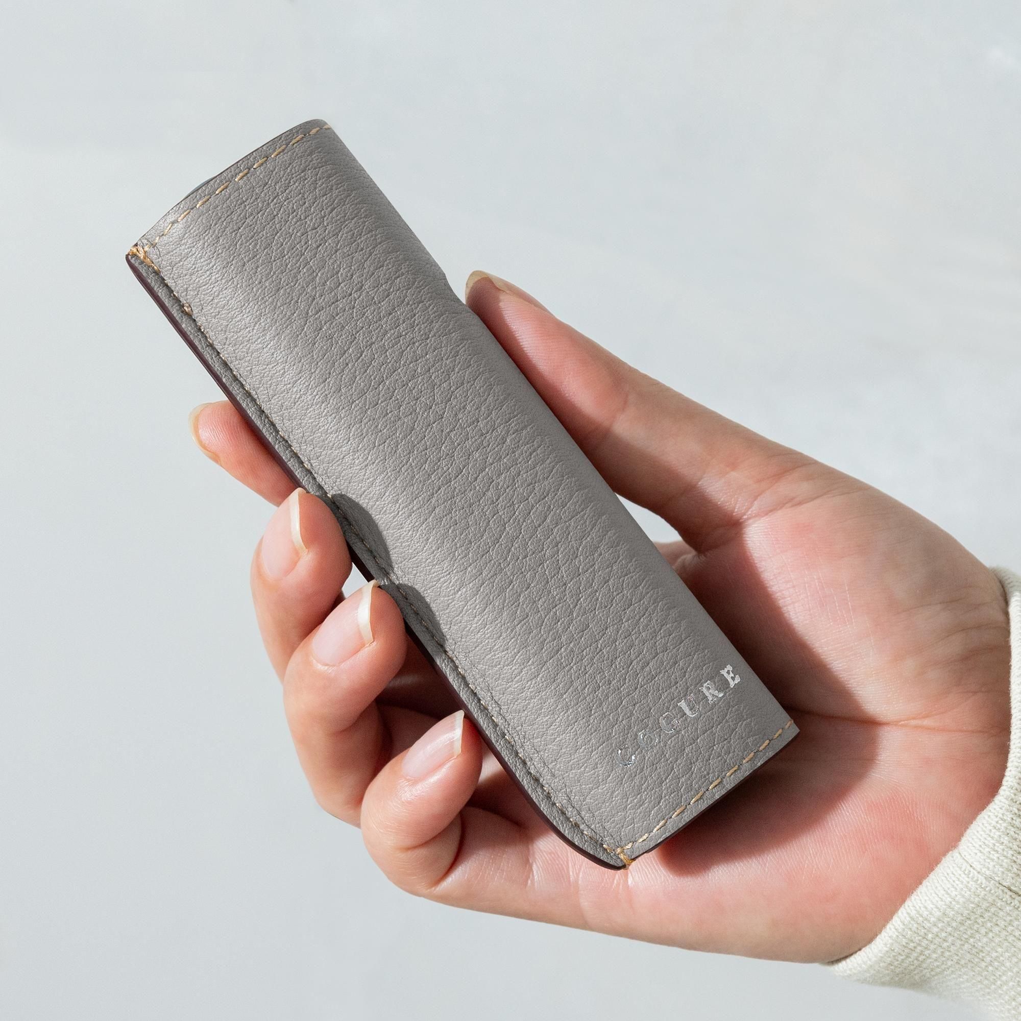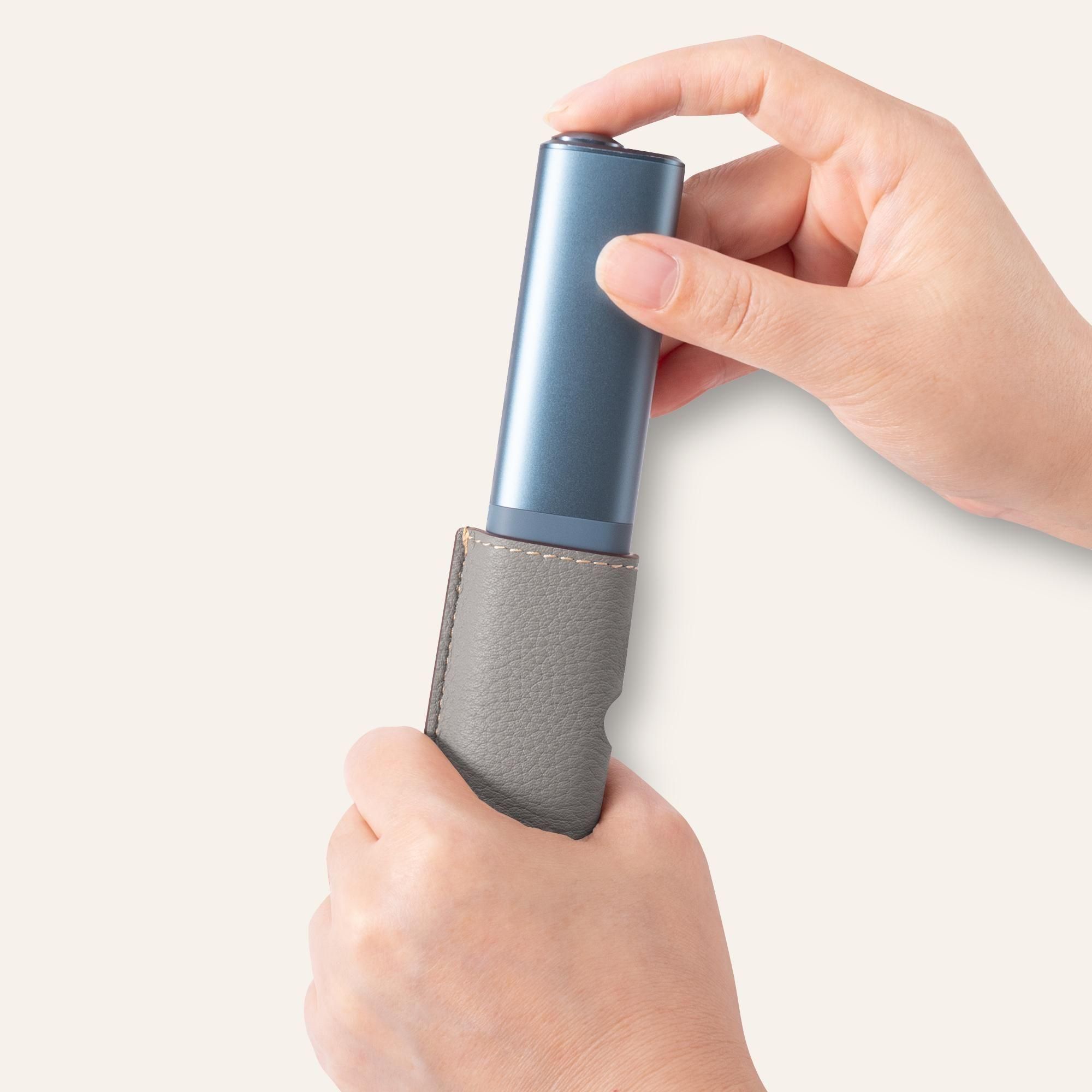 選び抜かれた高級皮革「シュリンクカーフレザー」を贅沢に使用し、スリーブとヒートスティックケースを統一素材で仕立てました。天然皮革ならではの柔らかな質感と、深みのあるシボがもたらす気品。余計な装飾を排したミニマルなフォルムに、コントラストの効いたステッチが際立ちます。手にするたびに感じる重厚な存在感が、日常にさりげない高級感と満足感を添えます。