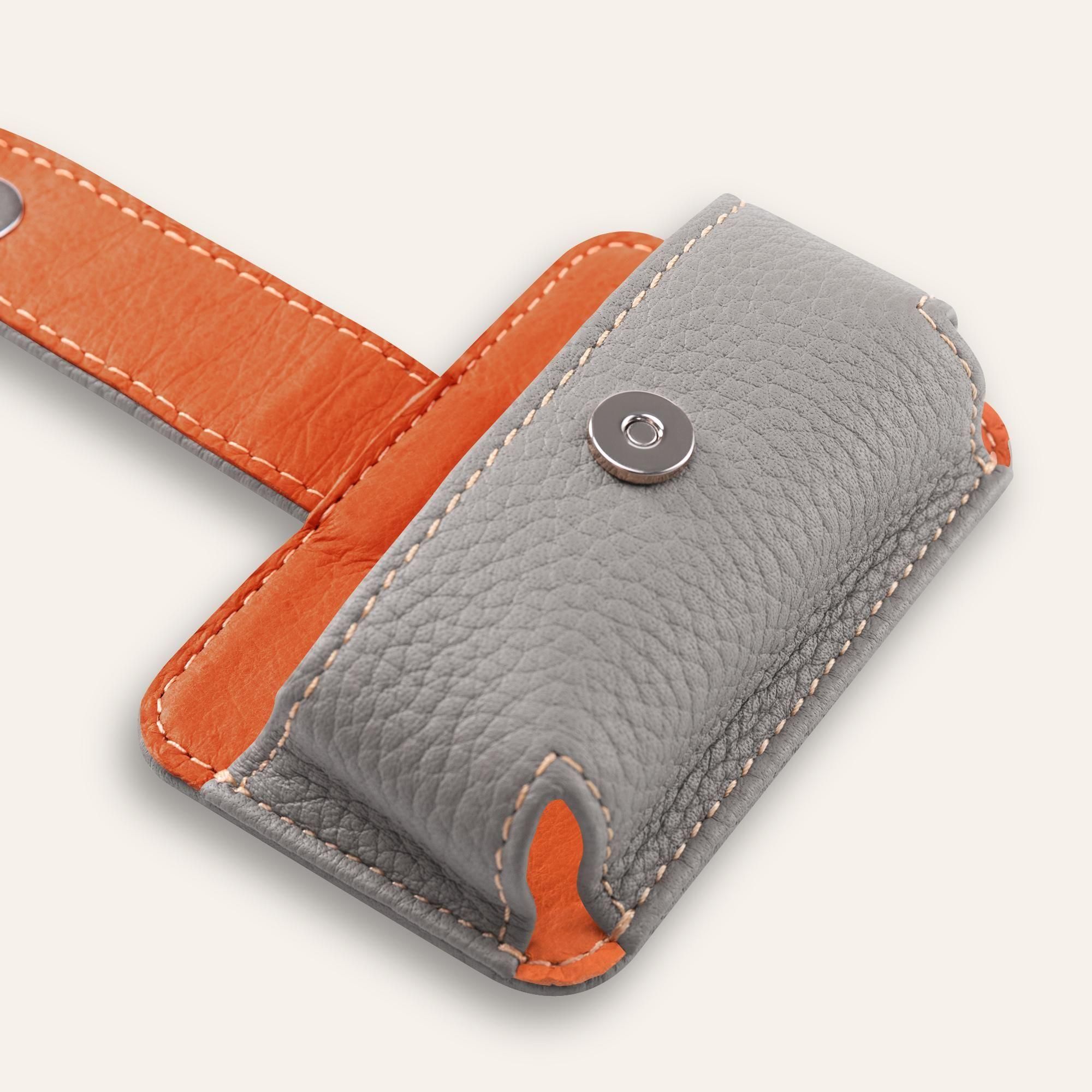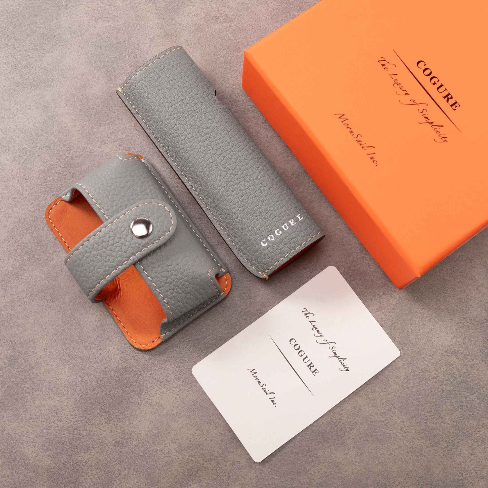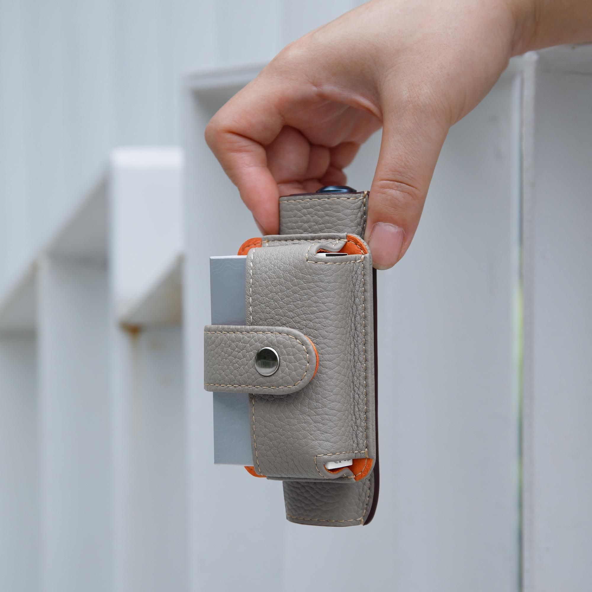 ヒートスティックの箱をそのまま収納できる、シンプルで機能的なデザイン。上質な本革に、内側のアクセントカラーが映える構成で、さりげない個性を演出します。箱の潰れや破損を防ぎ、スティックを常に美しい状態で持ち運び可能。開閉はマグネットホック式で、片手でもスムーズに扱えます。