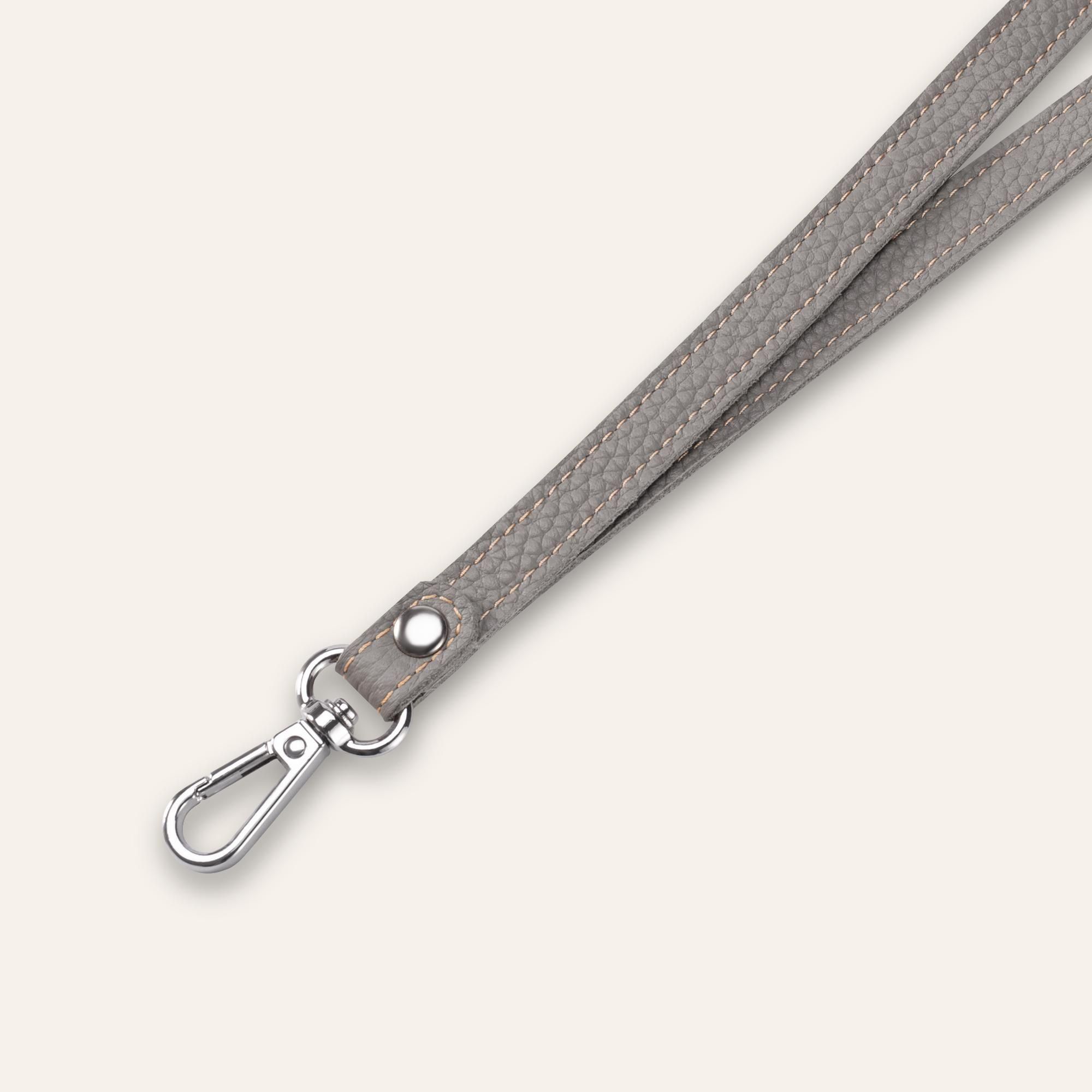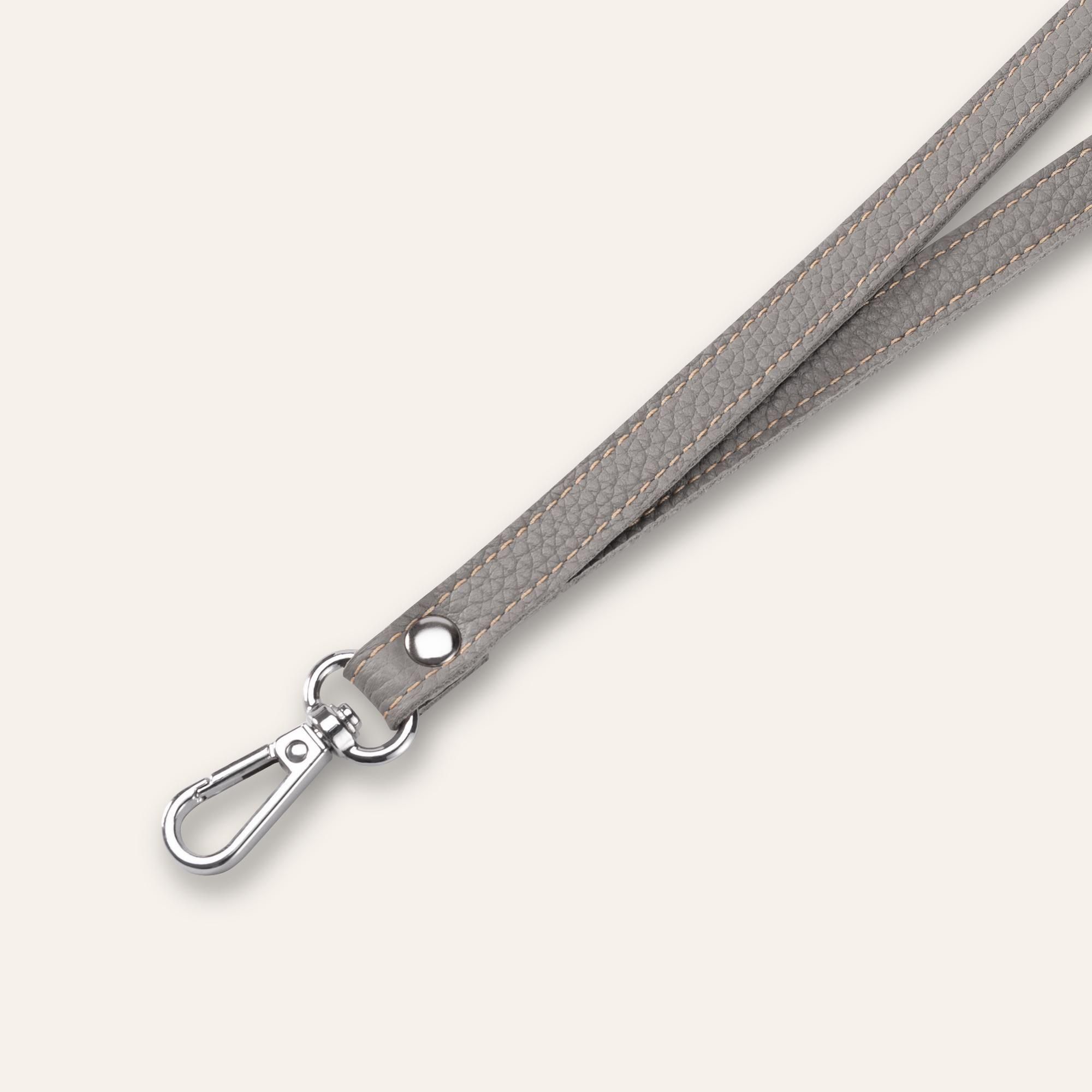 レザーの質感を引き立てるのは、銀メッキ仕上げの合金製ナスカン。確かな強度を持ちながら、繊細な光沢をまとうその表情は、まるでジュエリーのよう。光の角度でニュアンスを変えるクールな艶が、モダンで上品な存在感を演出し、スタイルをより洗練された印象へと導きます。