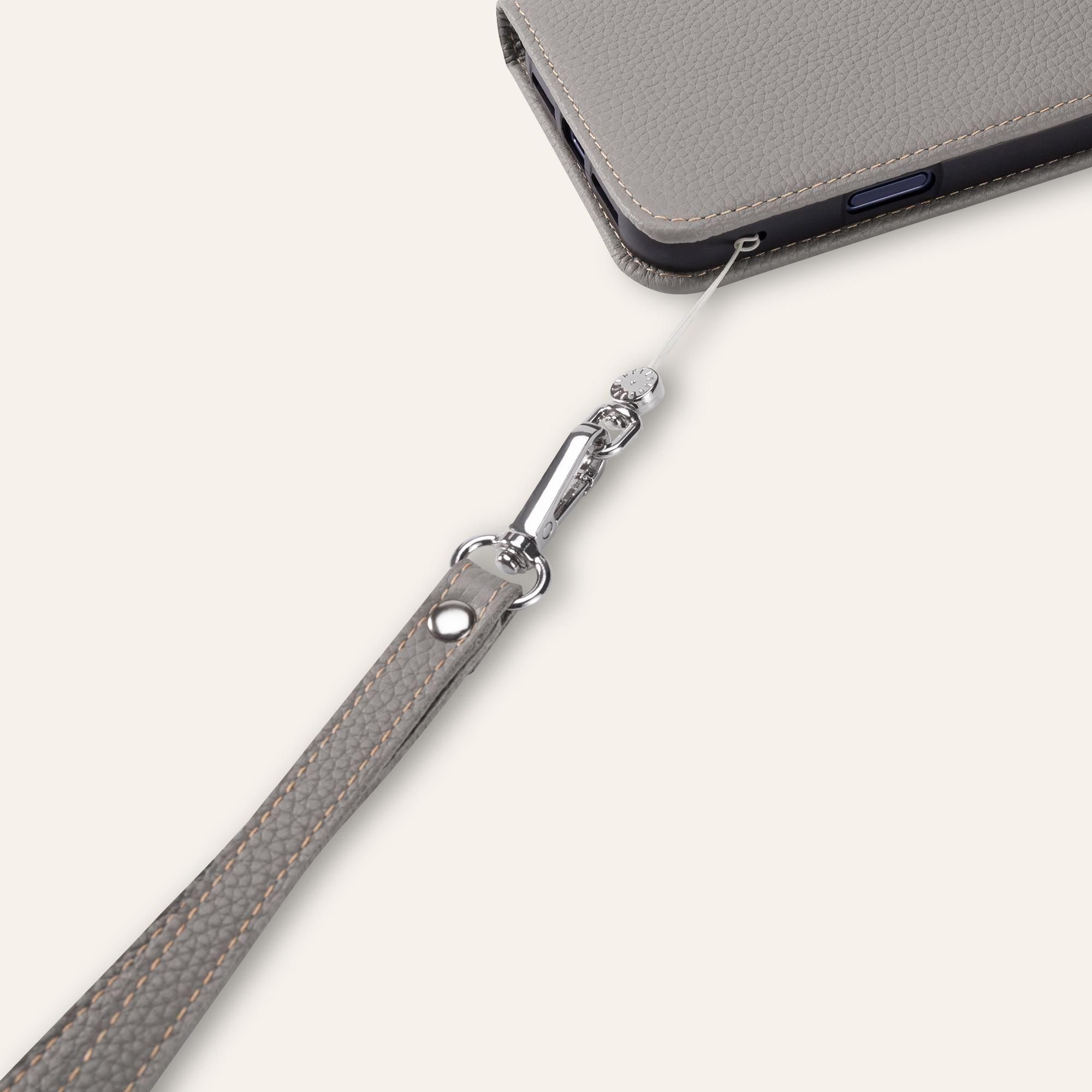 スマートフォンケースの充電ポートやストラップホールに装着できる、専用ホルダー&ストラップ紐をセットでご用意。ネックストラップと組み合わせれば、より幅広いデバイスに対応し、ライフスタイルやシーンに合わせて自在にアレンジが可能。“持ち方”までスタイルの一部として楽しめる、自由度の高い設計です。