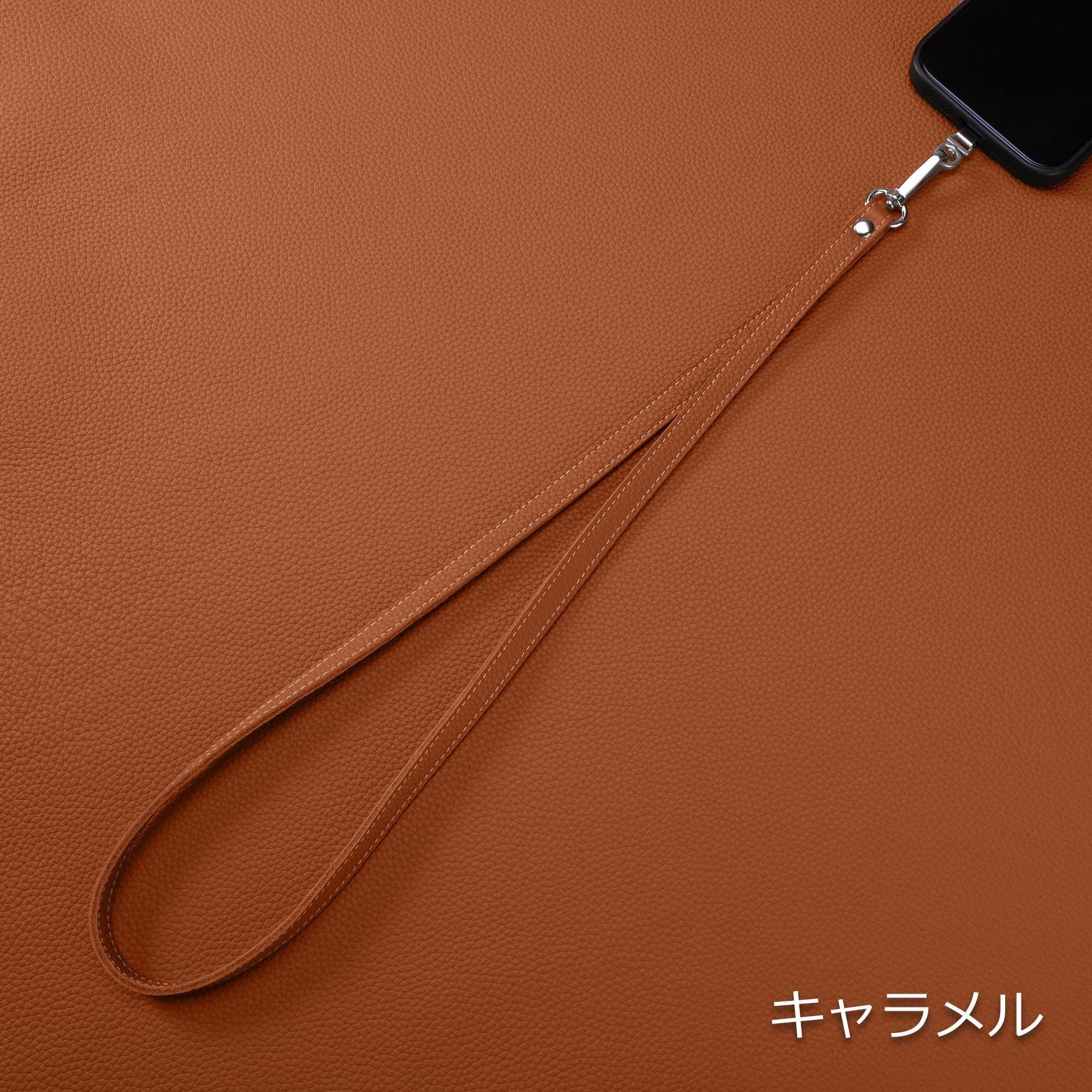 ヨーロッパの名だたる高級ブランドも採用する「シュリンクカーフレザー」を贅沢に使用した、上質でエレガントなネックストラップです。細やかなシボが生み出す自然な質感と、手に馴染むやわらかな触り心地が特徴。使い込むほどに深みのある風合いへと変化し、色落ちや色褪せがほとんど見られない優れた耐久性を備えています。シンプルながらも上品なデザインで、スマホや小物をスタイリッシュに身に着けたい方に最適のアイテムです。