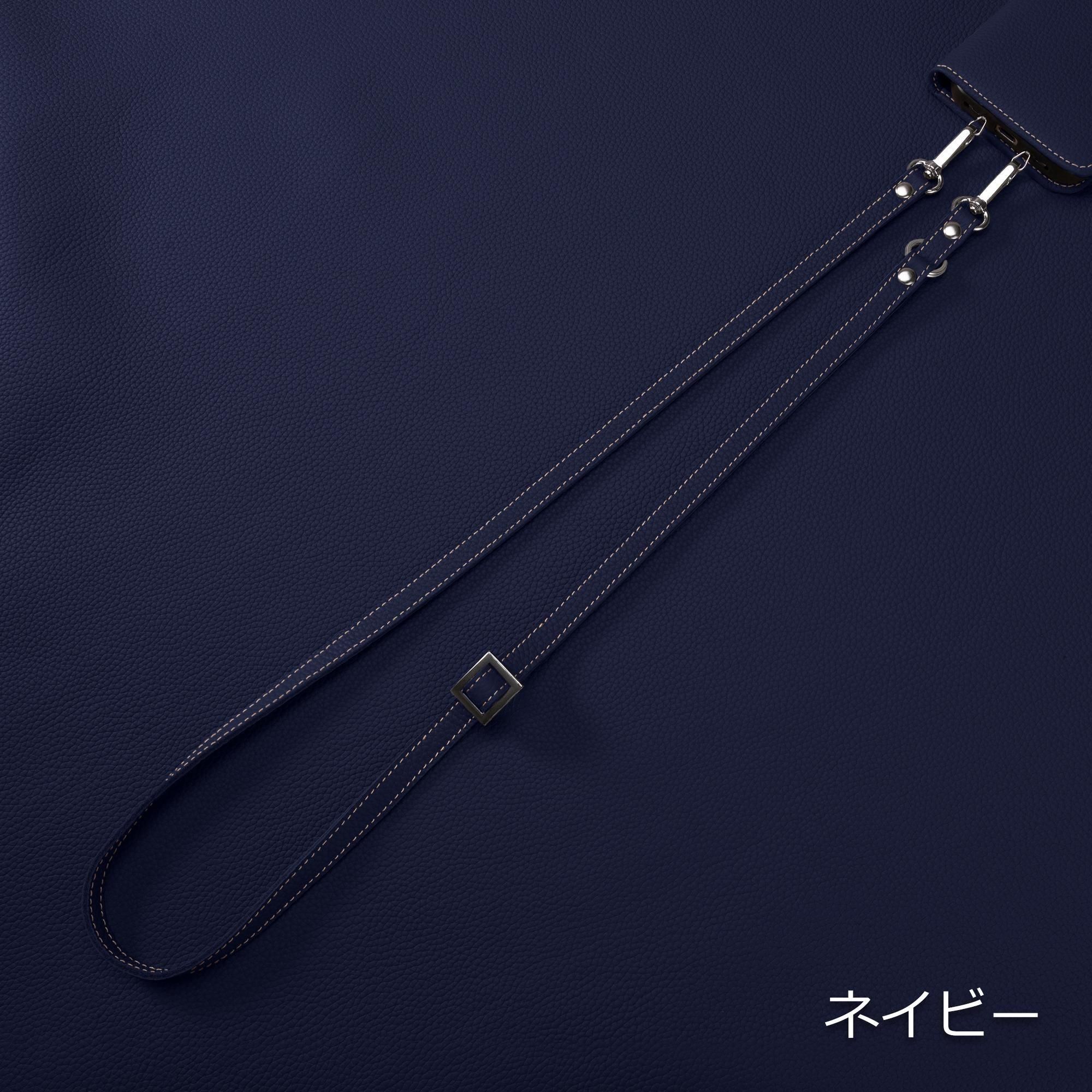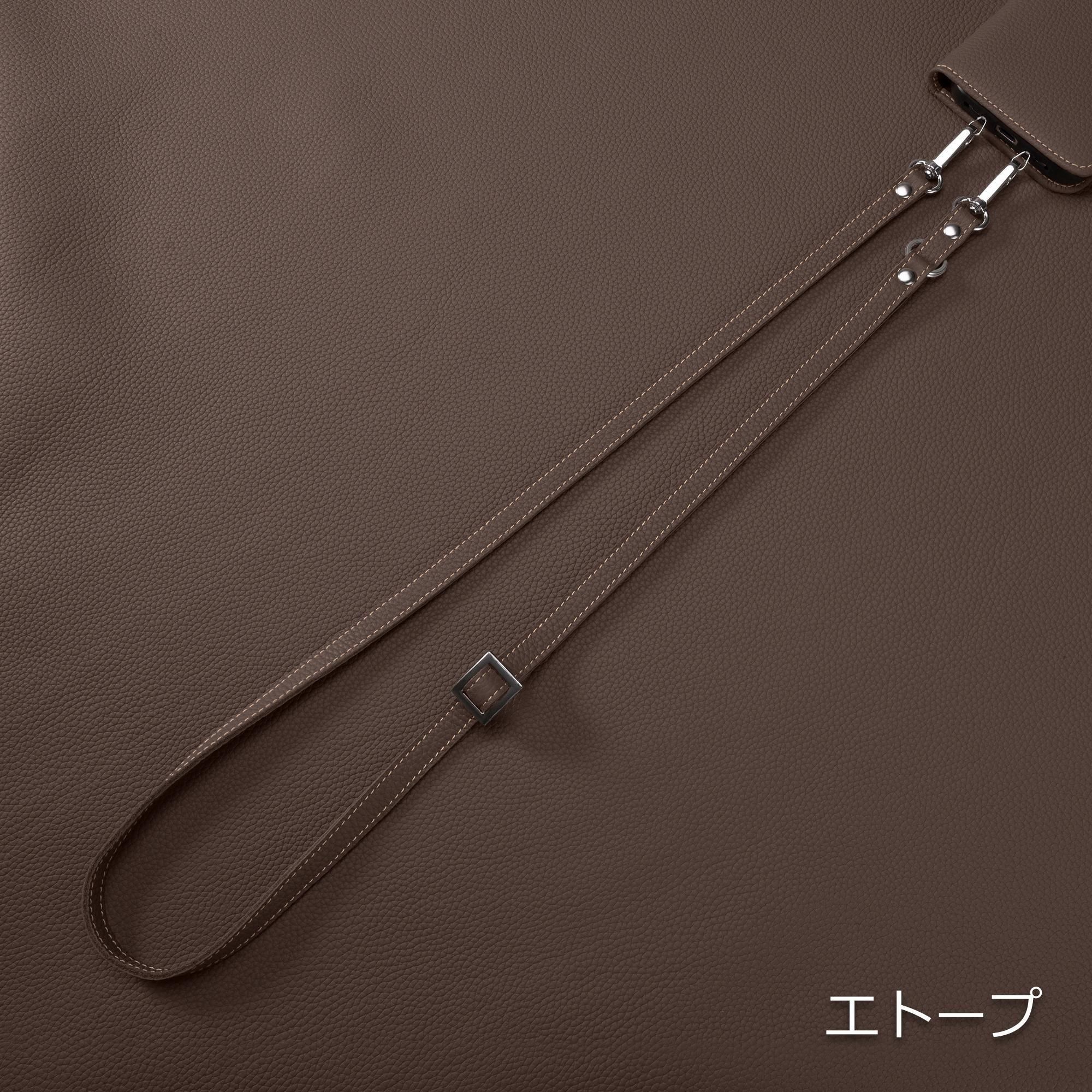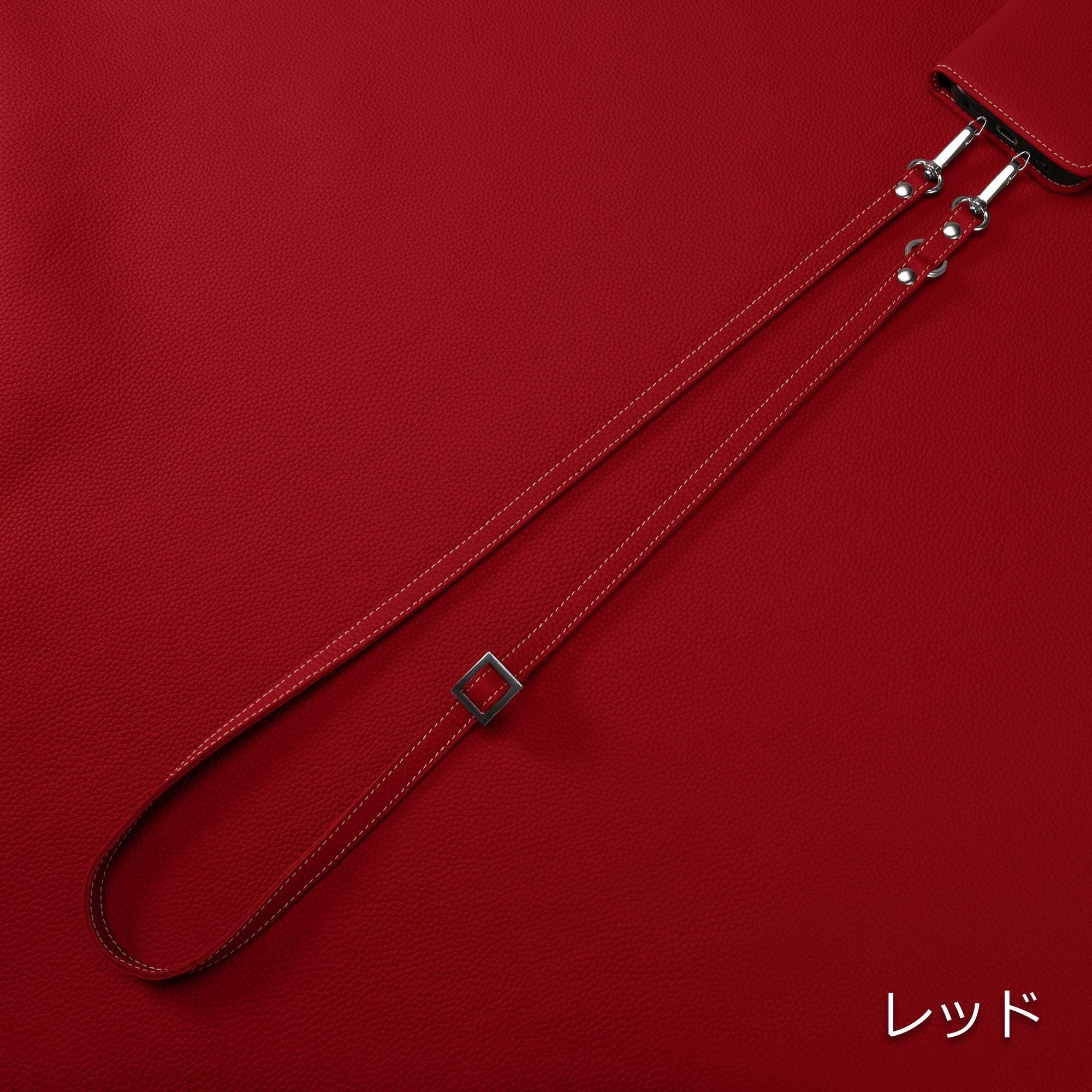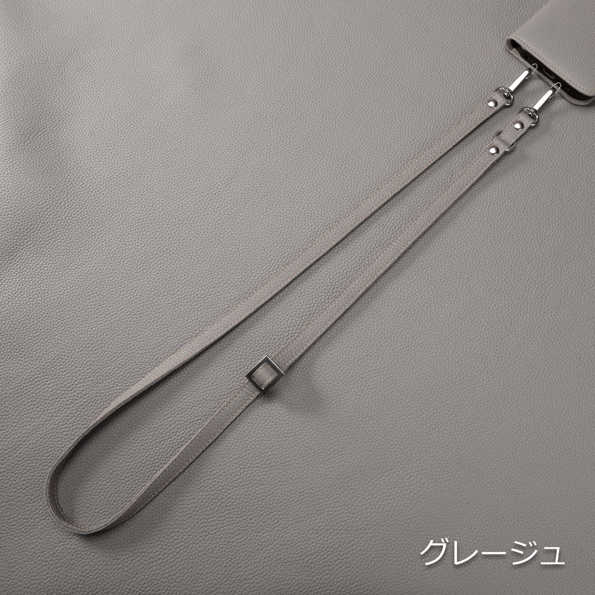 幅1.2cmのすっきりとしたフォルムが身体に自然に寄り添い、長時間でも快適な着用感を実現。両面にレザーを贅沢にあしらい、どの角度から見ても美しいシボ模様が続く上品な仕上がりです。スマホや小物をハンズフリーで持ち歩きながら、日常スタイルにさりげなく余裕と品格を添えます。