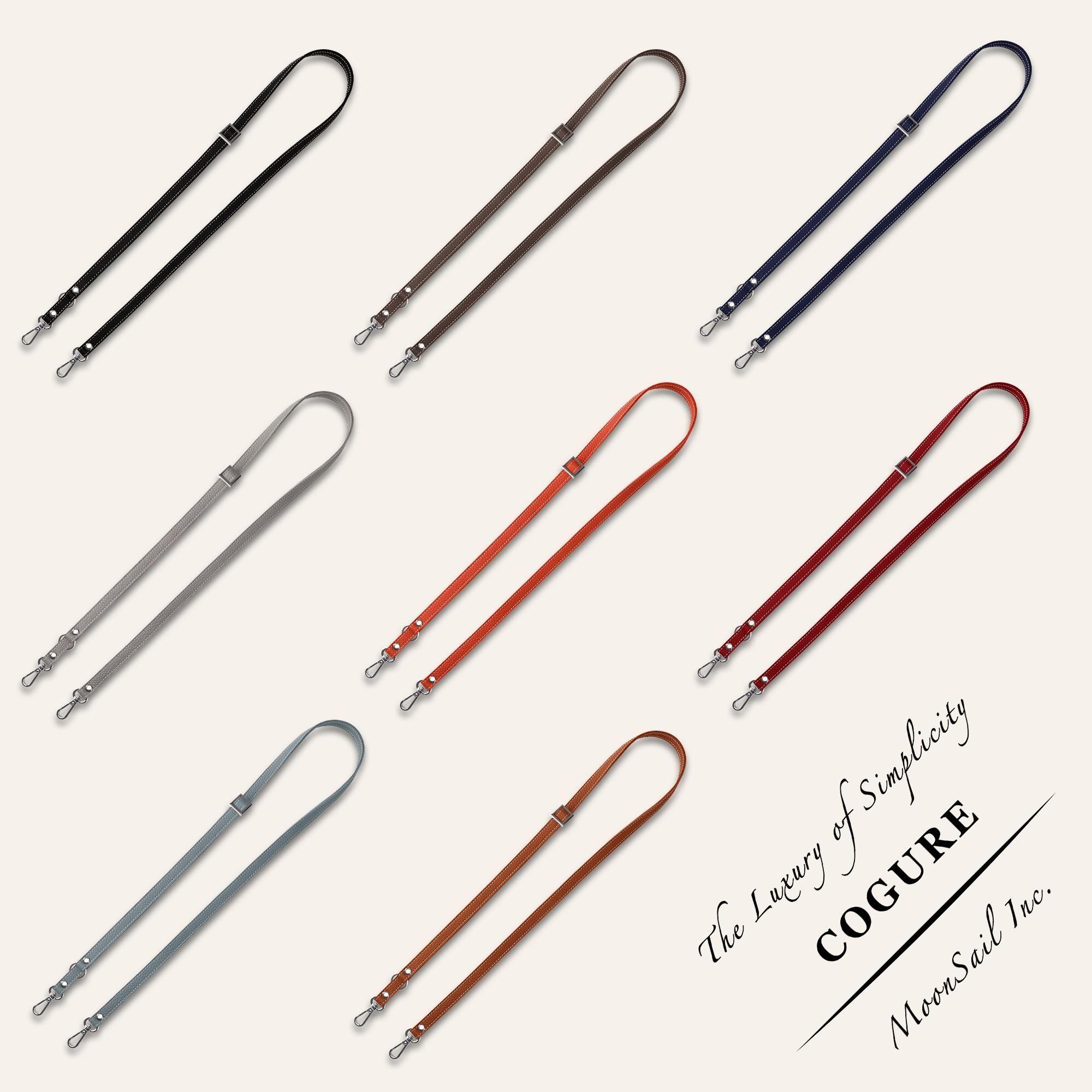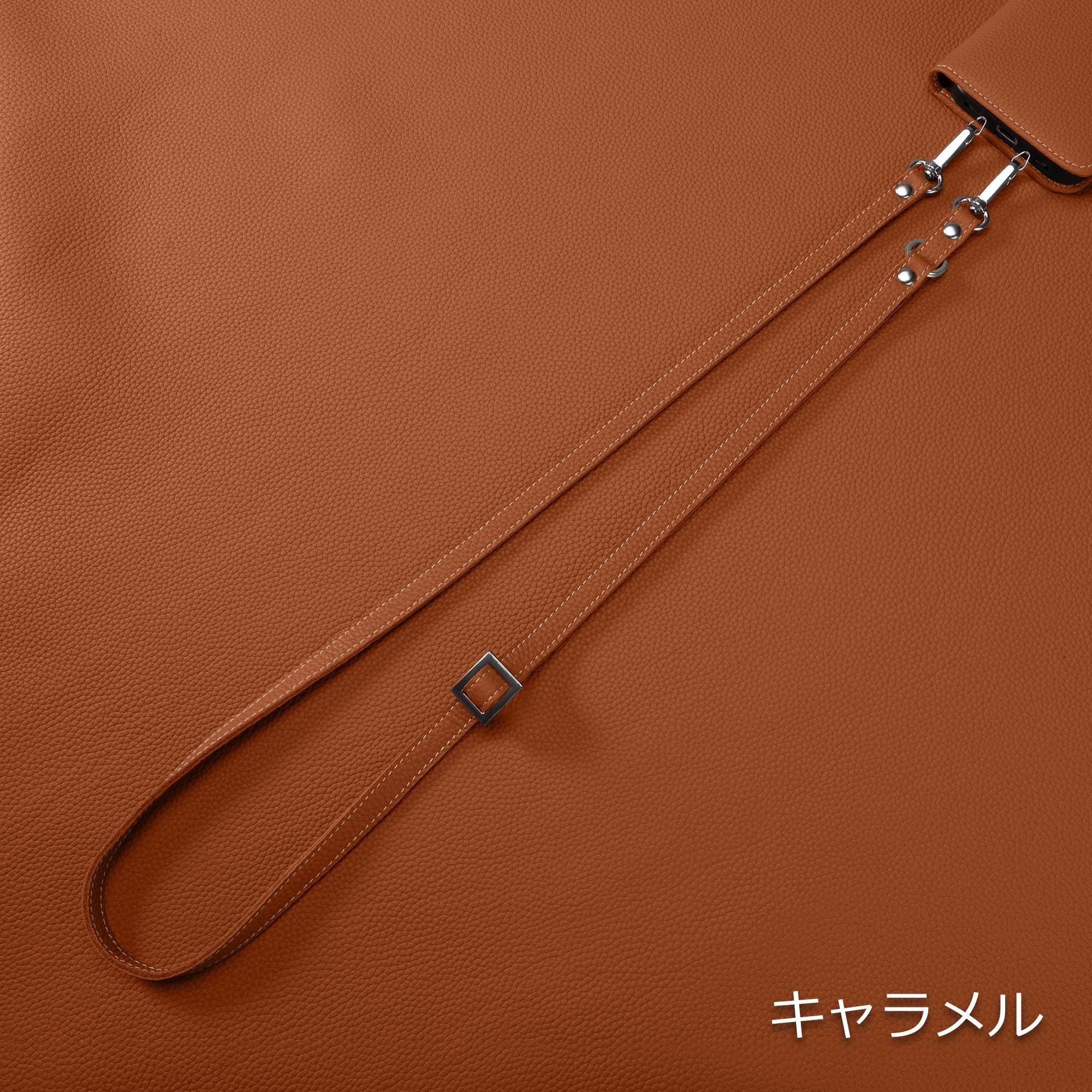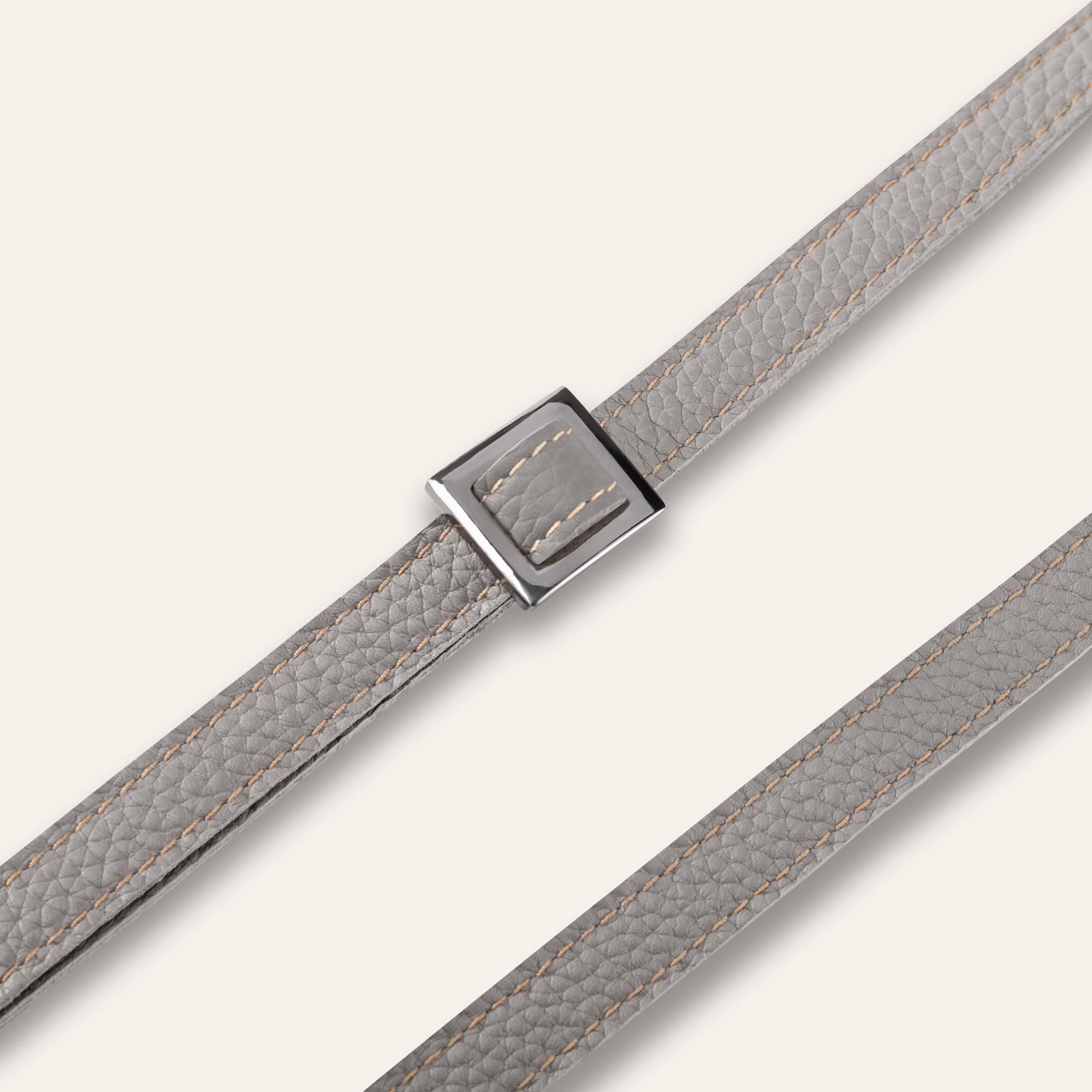 幅1.2cmのすっきりとしたフォルムが身体に自然に寄り添い、長時間でも快適な着用感を実現。両面にレザーを贅沢にあしらい、どの角度から見ても美しいシボ模様が続く上品な仕上がりです。スマホや小物をハンズフリーで持ち歩きながら、日常スタイルにさりげなく余裕と品格を添えます。