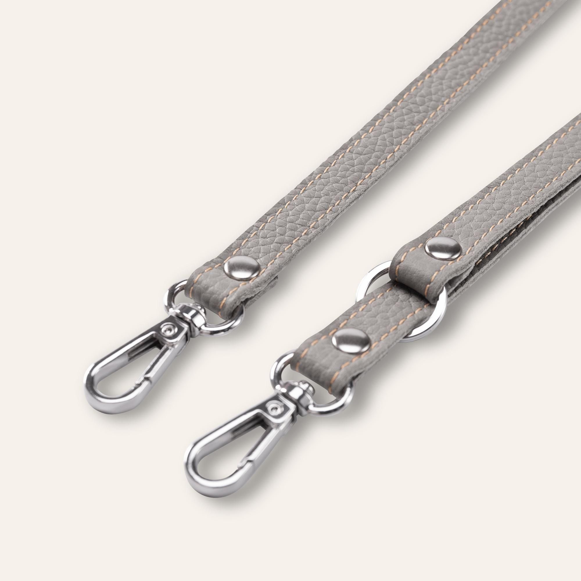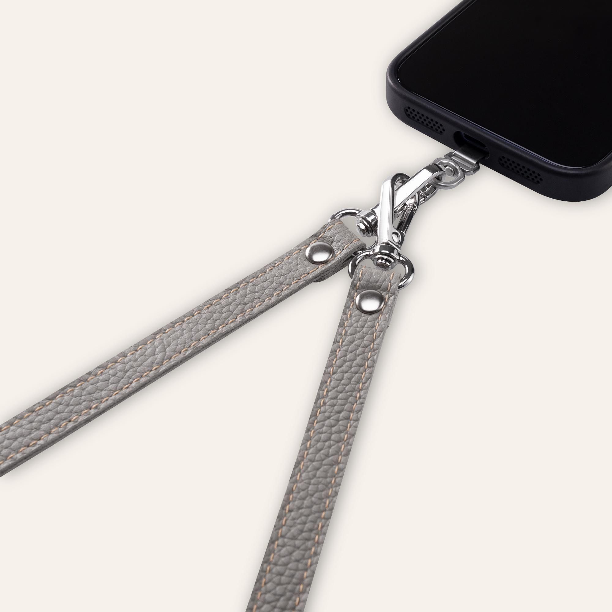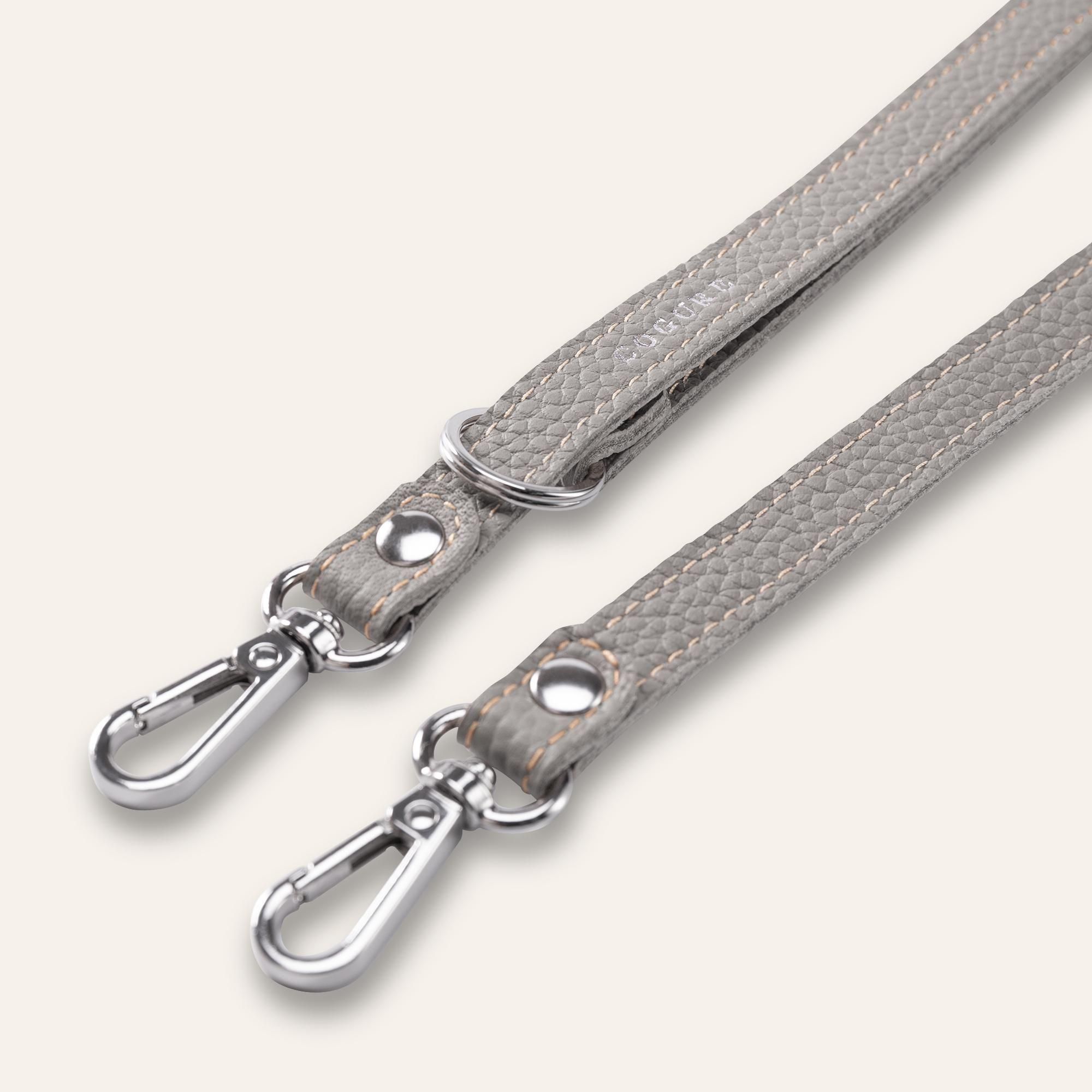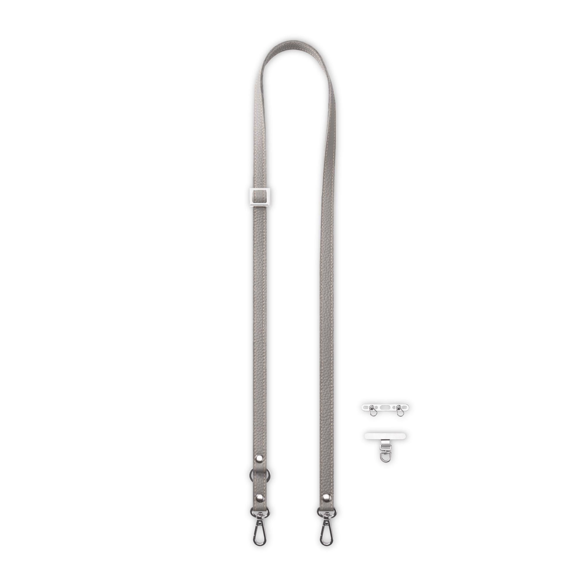 幅1.2cmのすっきりとしたフォルムが身体に自然に寄り添い、長時間でも快適な着用感を実現。両面にレザーを贅沢にあしらい、どの角度から見ても美しいシボ模様が続く上品な仕上がりです。スマホや小物をハンズフリーで持ち歩きながら、日常スタイルにさりげなく余裕と品格を添えます。