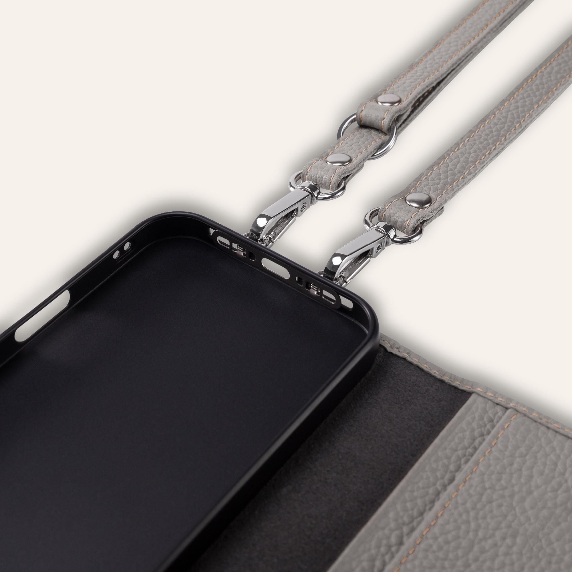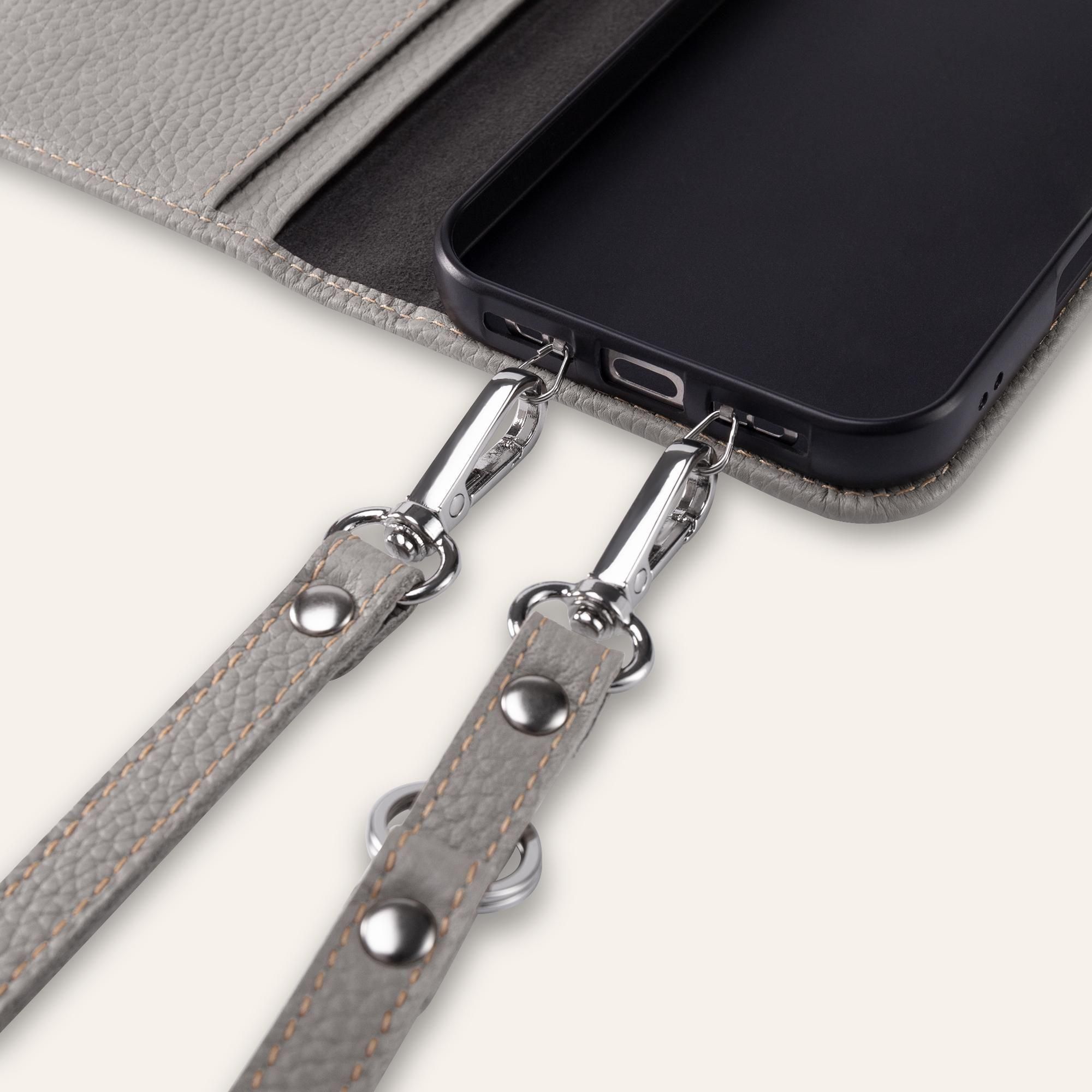 スマートフォンケースの充電ポート型・スピーカー穴型(2口タイプ)の両方に対応できる、便利な2種のホルダーを付属。多様なケースにフィットし、安定した装着感を実現します。ショルダーとしてもネック掛けとしても使え、“持ち方”までコーディネートできる自由度の高い仕様です。